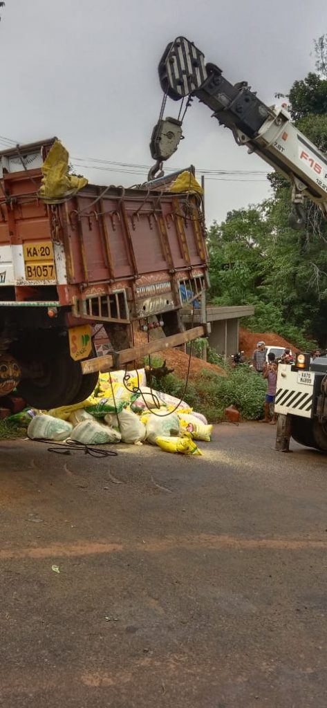 ಶಿವಮೊಗ್ಗದಿಂದ ಪುತ್ತೂರಿಗೆ ಅಕ್ಕಿ ಮೂಟೆಗಳನ್ನು ಹೇರಿಕೊಂಡು ಬರುತ್ತಿದ್ದ ಲಾರಿ ಎಸ್.ವಿ.ಎಸ್. ಕಾಲೇಜು ಬಳಿ ಸಂಚರಿಸುತ್ತಿದ್ದಂತೆ ಚಾಲಕನ ನಿಯಂತ್ರಣ ಕಳೆದುಕೊಂಡು ರಸ್ತೆ ಪಕ್ಕಕ್ಕೆ ಹೋಗಿ ಡಿಕ್ಕಿ ಹೊಡೆಯಿತು. ಬಂಟ್ವಾಳ ಸಂಚಾರಿ ಠಾಣಾ ಪೊಲೀಸ್ ಸ್ಥಳಕ್ಕೆ ಆಗಮಿಸಿ ಪರಿಶೀಲನೆ ನಡೆಸಿದರು. ಇದೇ ವೇಳೆ ವಾಹನ ಸಂಚಾರ ಅಸ್ತವ್ಯವಸ್ತವಾದ ಹಿನ್ನೆಲೆಯಲ್ಲಿ ವಿಜಯಲಕ್ಷ್ಮೀ ಕ್ರೇನ್ ಅವರು ಉಚಿತವಾಗಿ ಕ್ರೇನ್ ಒದಗಿಸಿ, ಲಾರಿ ತೆರವಿಗೆ ಸಹಕರಿಸಿದರು.