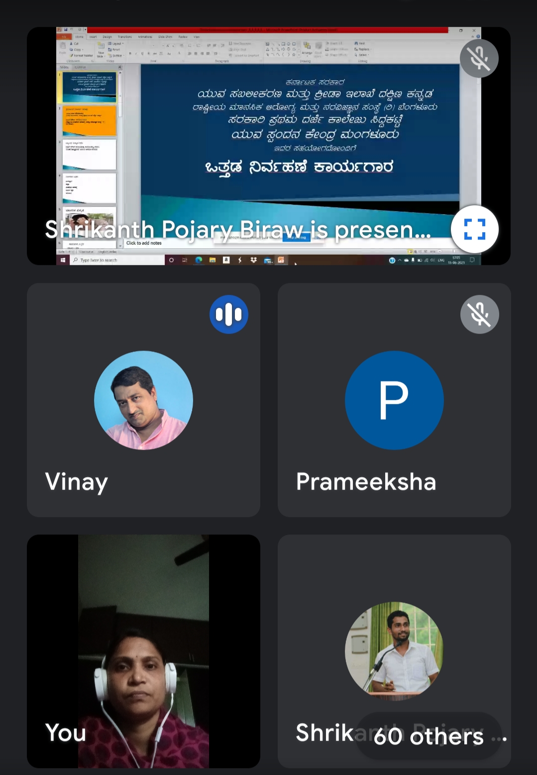 ಸಿದ್ಧಕಟ್ಟೆ: ಸಿದ್ಧಕಟ್ಟೆ ಸರ್ಕಾರಿ ಪ್ರಥಮ ದರ್ಜೆ ಕಾಲೇಜಿನಲ್ಲಿ ಕೋವಿಡ್ ಸಂದರ್ಭ ಒತ್ತಡ ನಿರ್ವಹಣೆ ಎಂಬ ಕುರಿತು ವೆಬಿನಾರ್ ನಡೆಯಿತು.ಕಾಲೇಜಿನ ಆಂತರಿಕ ಗುಣಮಟ್ಟ ಭರವಸೆ ಕೋಶ ಮತ್ತು ರಾಷ್ಟ್ರೀಯ ಸೇವಾ ಯೋಜನೆ, ಯುವ ಸಬಲೀಕರಣ ಹಾಗೂ ಕ್ರೀಡಾ ಇಲಾಖೆ, ರಾಷ್ಟ್ರೀಯ ಮಾನಸಿಕ ಆರೋಗ್ಯ ಹಾಗೂ ನರವಿಜ್ಞಾನ ಸಂಸ್ಥೆ(ರಿ) ಬೆಂಗಳೂರು ಹಾಗೂ ಯುವ ಸ್ಪಂದನ ಕೇಂದ್ರ ಮಂಗಳೂರು ಇವುಗಳ ಆಶ್ರಯದಲ್ಲಿಕಾರ್ಯಕ್ರಮ ನಡೆಯಿತು.