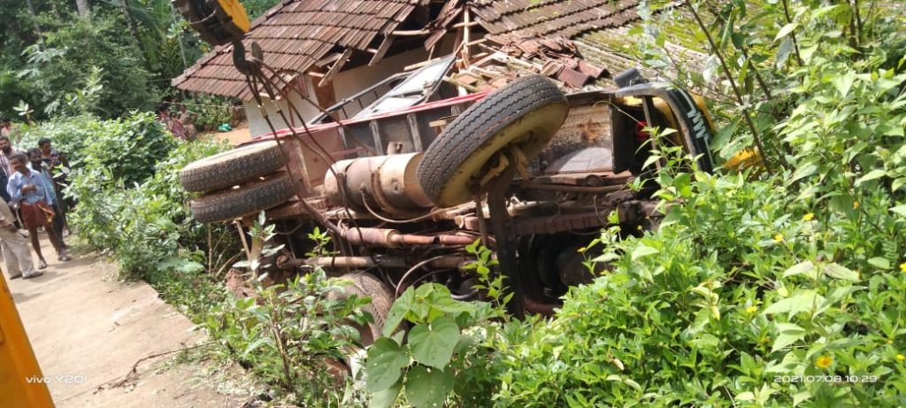 ಬಂಟ್ವಾಳ: ಹಿಟಾಚಿ ಯಂತ್ರವನ್ನು ಸಾಗಿಸುತ್ತಿದ್ದ ವೇಳೆ ಮನೆ ಮೇಲೆಯೇ ಟಿಪ್ಪರ್ ಒಂದು ಬಿದ್ದ ಘಟನೆ ಗುರುವಾರ ಬೆಳಗ್ಗೆ ಬಂಟ್ವಾಳ ತಾಲೂಕಿನ ಅಮ್ಟಾಡಿ ಎಂಬಲ್ಲಿ ನಡೆದಿದೆ. ಅಮ್ಟಾಡಿಯ ಕೆಂಪುಗುಡ್ಡೆ ಕ್ರಾಸ್ ಬಳಿ ಈ ಘಟನೆ ನಡೆದಿದ್ದು, ನಾರಾಯಣ ಭಂಡಾರಿ ಎಂಬವರ ಮನೆ ಇದರಿಂದ ಜಖಂಗೊಂಡಿದ್ದು, ಮನೆ ಮಂದಿ ಪ್ರಾಣಾಪಾಯದಿಂದ ಪಾರಾಗಿದ್ದಾರೆ. ಆದರೆ ಘಟನೆಯಲ್ಲಿ ಟಿಪ್ಪರ್ ನಲ್ಲಿದ್ದ ವಿಠಲ್ ಎಂಬವರು ಗಾಯಗೊಂಡು ಟಿಪ್ಪರ್ ನಡಿ ಸಿಲುಕಿದ್ದರು. ಈ ಸಂದರ್ಭ ಬಿ.ಸಿ.ರೋಡಿನ ವಿಜಯಲಕ್ಷ್ಮೀ ಕ್ರೇನ್ ಮೂಲಕ ಟಿಪ್ಪರನ್ನು ಮೇಲಕ್ಕೆತ್ತಲಾಗಿದ್ದು ಗಾಯಾಳುವನ್ನು ಆಸ್ಪತ್ರೆಗೆ ಸಾಗಿಸಲಾಯಿತು.