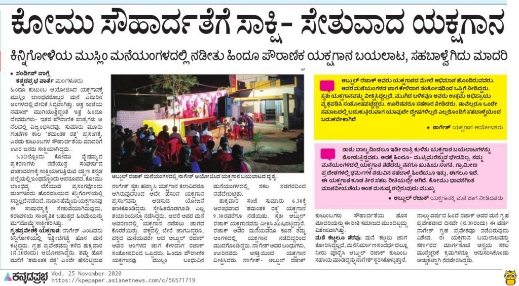 ಕನ್ನಡ ಪ್ರಭ ದಿನ ಪತ್ರಿಕೆಯಲ್ಲಿ 2020, ನವಂಬರ್ 25ರಂದು ಪ್ರಕಟಗೊಂಡ ಸಂದೀಪ್ ವಾಗ್ಲೆ ಅವರ ವರದಿ‘ ಕೋಮು ಸೌಹಾರ್ದ ತೆಗೆ ಸಾಕ್ಷಿ-ಸೇತುವಾದ ಯಕ್ಷಗಾನ ಎಂಬ ವರದಿಗೆ ಪ್ರಶಸ್ತಿ ಲಭಿಸಿದೆ. ಪ್ರಶಸ್ತಿಯು ರೂ. 5,001 ನಗದು, ಪ್ರಶಸ್ತಿ ಪತ್ರ ಮತ್ತು ಸ್ಮರಣಿಕೆಯನ್ನು ಒಳಗೊಂಡಿರುತ್ತವೆ ಎಂದು ದ.ಕ.ಜಿಲ್ಲಾ ಕಾರ್ಯನಿರತ ಪತ್ರಕರ್ತರ ಸಂಘದ ಪ್ರಧಾನ ಕಾರ್ಯದರ್ಶಿ ಇಬ್ರಾಹಿಂ ಅಡ್ಕಸ್ಥಳ ಪತ್ರಿಕಾ ಪ್ರಕಟಣೆಯಲ್ಲಿ ತಿಳಿಸಿದ್ದಾರೆ. ದಿ ಹಿಂದು ಪತ್ರಿಕೆಯ ಮಂಗಳೂರು ಬ್ಯುರೋ ಮುಖ್ಯಸ್ಥರಾದ ರವಿಪ್ರಸಾದ್ ಕಮಿಲ,ಬೆಸೆಂಟ್ ಮಹಿಳಾ ಕಾಲೇಜಿನ ಪತ್ರಿಕೋದ್ಯಮ ವಿಭಾಗದ ಮುಖ್ಯಸ್ಥೆ ಸ್ಮಿತಾ ಶೆಣೈ ಮತ್ತು ಮಂಗಳೂರು ವಿವಿ ಕಾಲೇಜಿನ ಪತ್ರಿಕೋದ್ಯಮ ವಿಭಾಗದ ಉಪನ್ಯಾಸಕಿ ಡಾ.ಸೌಮ್ಯ ಕೆ.ಬಿ.ಕಿಕ್ಕೇರಿ ನೇತೃತ್ವದ ಆಯ್ಕೆ ಸಮಿತಿಯು ಈ ಆಯ್ಕೆ ಮಾಡಿದೆ. ಜುಲೈ 22ರಂದು ಪತ್ರಿಕಾಭವನದಲ್ಲಿ ನಡೆಯಲಿರುವ ಪತ್ರಿಕಾ ದಿನಾಚರಣೆಯ ಸಂದರ್ಭದಲ್ಲಿ ಪ್ರಶಸ್ತಿ ಪ್ರದಾನ ಮಾಡಲಾಗುವುದು. ದ.ಕ.ಜಿಲ್ಲಾ ಪೊಲೀಸ್ ವರಿಷ್ಠಾಧಿಕಾರಿ ಋಷಿಕೇಶ್ ಭಗವಾನ್ ಸೋನಾವಣೆ ಪ್ರಶಸ್ತಿ ಪ್ರದಾನ ಮಾಡಲಿರುವರು.