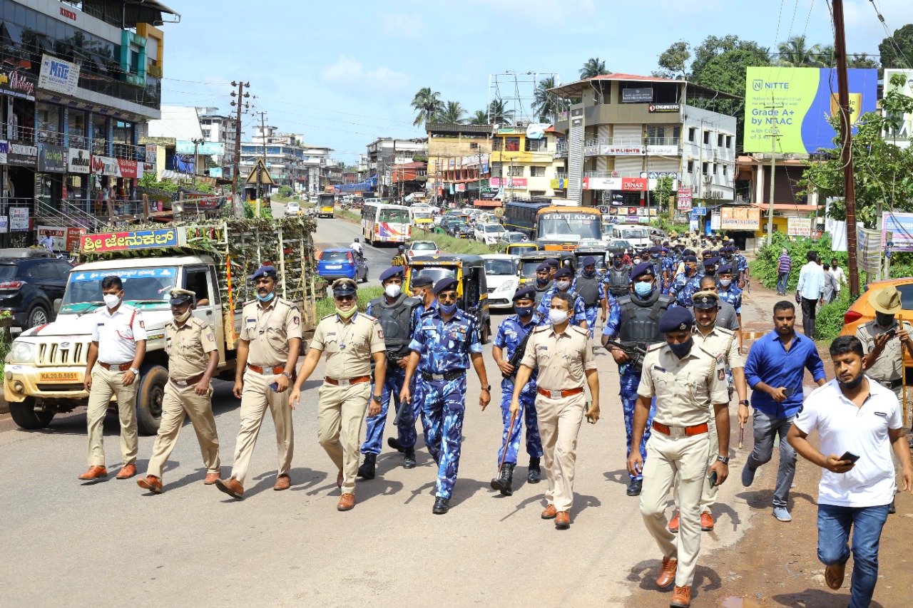 ಬಂಟ್ವಾಳ; ಬಂಟ್ವಾಳ ತಾಲೂಕಿನ ಸೂಕ್ಮ ಪ್ರದೇಶಗಳಲ್ಲಿ ಬಂಟ್ವಾಳ ವೃತ್ತದ ಪೋಲೀಸ್ ಹಾಗೂ ಕ್ಷಿಪ್ರ ಕಾರ್ಯ ಪಡೆ ವತಿಯಿಂದ ಪಥ ಸಂಚಲನ ಮಂಗಳವಾರ ನಡೆಯಿತು. ಪರಂಗಿಪೇಟೆ, ಕೈಕಂಬ, ಮೆಲ್ಕಾರ್, ಕಲ್ಲಡ್ಕ ಹಾಗೂ ವಿಟ್ಲ ಪೇಟೆಗಳಲ್ಲಿ ಬಂಟ್ವಾಳ ವೃತ್ತ ದ ಬಂಟ್ವಾಳ ನಗರ ಠಾಣೆ, ಗ್ರಾಮಾಂತರ ಠಾಣೆ ಹಾಗೂ ಮೆಲ್ಕಾರ್ ಟ್ರಾಫಿಕ್ ಠಾಣಾ ಪೋಲೀಸರು ಕ್ಷಿಪ್ರ ಕಾರ್ಯಪಡೆ ಜೊತೆಗೆ ರೂಟ್ ಮಾರ್ಚ್ ನಡೆಸಿದರು. ಕ್ಷಿಪ್ರ ಕಾರ್ಯ ಪಡೆಯ ಅಸಿಸ್ಟೆಂಟ್ ಕಮಾಂಡೆಂಟ್ ಶಹಜಾನ್ ಪಿ.ಕೆ, ಬಂಟ್ವಾಳ ನಗರ ಠಾಣಾ ಪೋಲೀಸ್ ಇನ್ಸ್ ಪೆಕ್ಟರ್ ಚೆಲುವರಾಜ್, ಬಂಟ್ವಾಳ ಗ್ರಾಮಾಂತರ ಠಾಣಾ ಪೋಲೀಸ್ ಇನ್ಸ್ ಪೆಕ್ಟರ್ ಟಿ.ಡಿ.ನಾಗರಾಜ್, ನಗರ ಠಾಣಾ ಎಸ್ ಐ ಅವಿನಾಶ್, ಗ್ರಾಮಾಂತರ ಎಸ್.ಐ. ಪ್ರಸನ್ನ, ಟ್ರಾಫಿಕ್ ಎಸ್.ಐ.ರಾಜೇಶ್ ಕೆ.ವಿ, ಅಪರಾಧ ವಿಭಾಗದ ಎಸ್ಐ. ಸಂಜೀವ ಕೆ ಪಥಸಂಚಲನದಲ್ಲಿ ಪಾಲ್ಗೊಂಡರು.