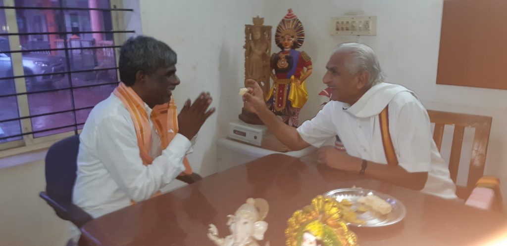 ಬಂಟ್ವಾಳ: ಸಚಿವರಾಗಿ ನೇಮಕಗೊಂಡ ಕೋಟ ಶ್ರೀನಿವಾಸ ಪೂಜಾರಿ ಅವರು ಶನಿವಾರ ಕಲ್ಲಡ್ಕಕ್ಕೆ ಆಗಮಿಸಿ ಶ್ರೀರಾಮ ವಿದ್ಯಾಕೇಂದ್ರದಲ್ಲಿ ಹಿರಿಯ ಆರೆಸ್ಸೆಸ್ ಮುಖಂಡ ಡಾ. ಕಲ್ಲಡ್ಕ ಪ್ರಭಾಕರ ಭಟ್ ಅವರ ಆಶೀರ್ವಾದ ಪಡೆದುಕೊಂಡರು. ಬಳಿಕ ಕೆಲ ಹೊತ್ತು ಅವರು ಮಾತುಕತೆ ನಡೆಸಿದರು. ಈ ಸಂದರ್ಭ ಡಾ. ಭಟ್ ಅವರು ಸಚಿವರನ್ನು ಅಭಿನಂದಿಸಿದರು.