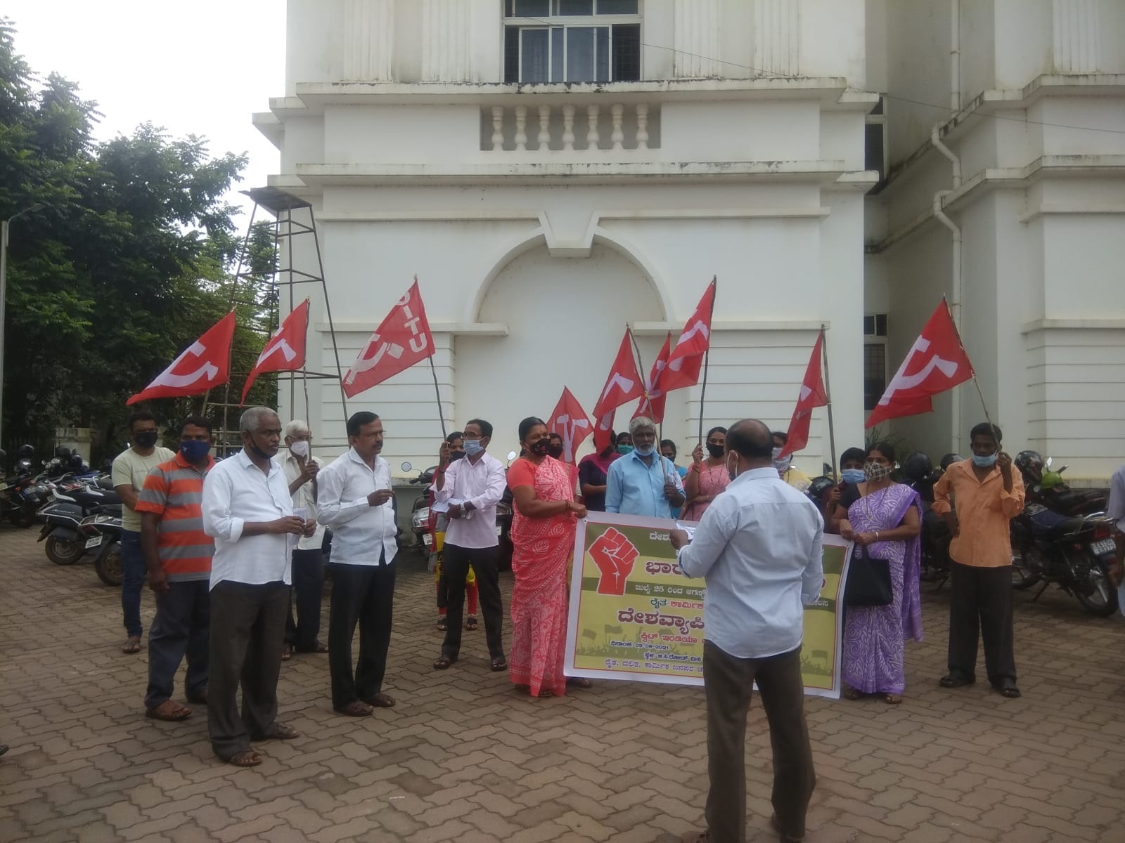 ಬಂಟ್ವಾಳ: ಕಾರ್ಪೊರೆಟ್ ಕಂಪನಿಗಳು ಭಾರತ ಬಿಟ್ಟು ತೊಲಗಬೇಕು ಎಂದು ಒತ್ತಾಯಿಸಿ ದೇಶವ್ಯಾಪಿ ಪ್ರತಿಭಟನೆಯ ಭಾಗವಾಗಿ ರೈತ, ಕಾರ್ಮಿಕರಿಂದ ಪ್ರತಿಭಟನೆ ಬಂಟ್ವಾಳ ಮಿನಿ ವಿಧಾನಸೌಧ ಮುಂಭಾಗ ನಡೆಯಿತು. ಸಿಐಟಿಯು ಜಿಲ್ಲಾಧ್ಯಕ್ಷ ಜೆ. ಬಾಲಕೃಷ್ಣ ಶೆಟ್ಟಿ ಮಾತನಾಡಿ ಮತ್ತೆ ಕಾರ್ಪೋರೇಟ್ ಕಂಪೆನಿಗಳು ಭಾರತದಲ್ಲಿ ನೆಲೆಯೂರಿ ದೇಶದ ಸಂಪತ್ತನ್ನು ಕೊಳ್ಳೆಹೊಡೆಯುತ್ತಿದೆ ಎಂದು ಆರೋಪಿಸಿದರೆ, ಸಿಐಟಿಯು ಜಿಲ್ಲಾ ಕಾರ್ಯದರ್ಶಿ ರಾಮಣ್ಣ ವಿಟ್ಲ ಮಾತನಾಡಿ ದುಡಿಯುವ ವರ್ಗಕ್ಕೆ ಕೇಂದ್ರ ಮತ್ತು ರಾಜ್ಯ ಸರ್ಕಾರಗಳು ವಂಚಿಸುತ್ತಿವೆ, ಕಾನೂನುಗಳನ್ನು ತಿದ್ದುಪಡಿ ಮಾಡುವ ಮೂಲಕ ಮಾಲಕರ ಹಿತ ಕಾಯುತ್ತಿದೆ ಎಂದು ಆರೋಪಿಸಿದರು. ಮುಖಂಡರಾದ ಉದಯಕುಮಾರ್ ಬಂಟ್ವಾಳ , ವಿನಯನಡುಮೊಗರು, ಸೇವಂತಿ, ದೇಜಪ್ಪ ಪೂಜಾರಿ, ಲಿಯಾಕತ್ ಖಾನ್ , ಅಪ್ಪು ನಾಯ್ಕ ನಾರಾಯಣ ಕೊಲೋಡಿ, ಈಶ್ವರ , ದಾಮೋದರ ಪರಕಜೆ ಮೊದಲಾದವರಿದ್ದರು.
