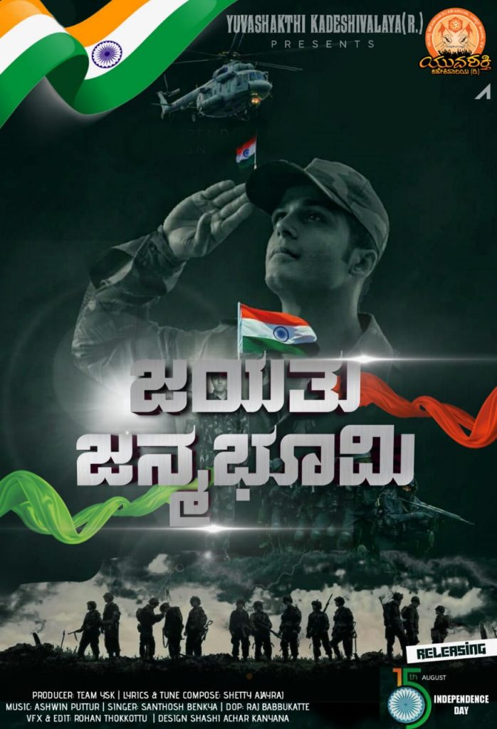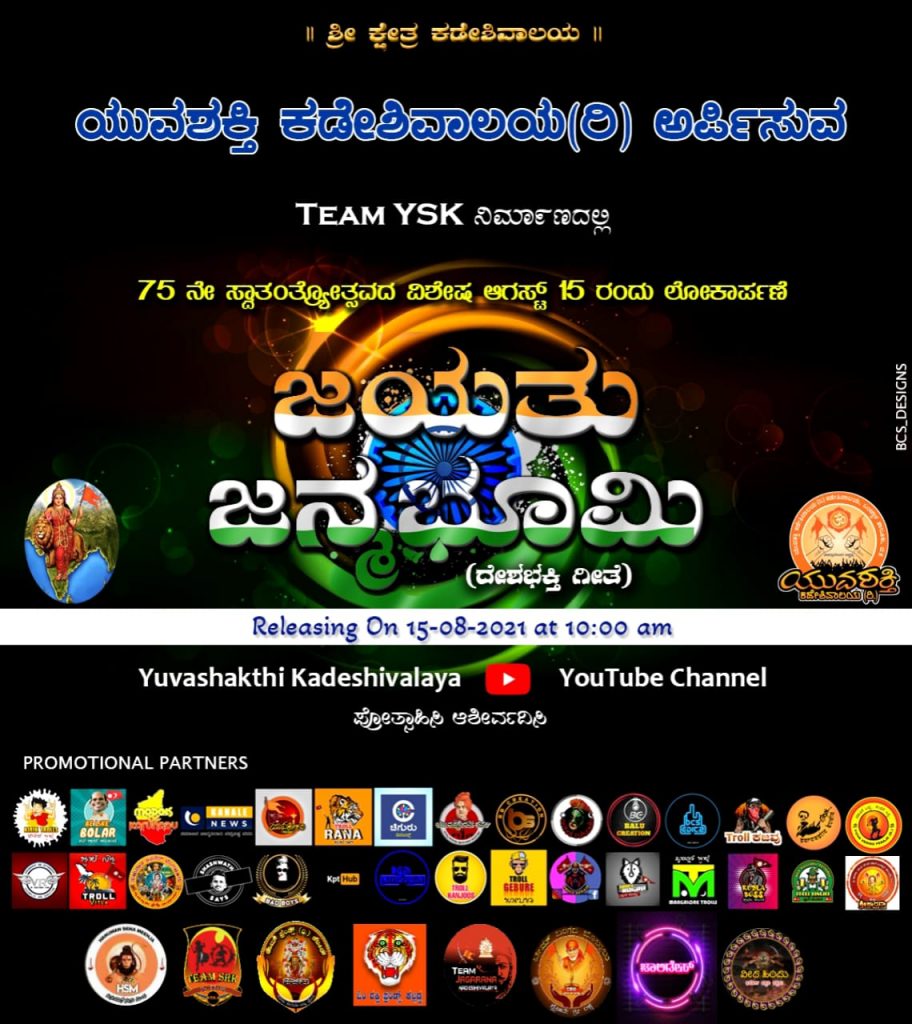 ಸಾಮಾಜಿಕ. ಸಾಂಸ್ಕೃತಿಕ. ಧಾರ್ಮಿಕ ಕಾರ್ಯಚಟುವಟಿಕೆಗಳಲ್ಲಿ ತೊಡಗಿಸಿಕೊಂಡಿರುವ ಯುವಶಕ್ತಿ ಕಡೇಶಿವಾಲಯ (ರಿ) ನಿರ್ಮಾಣದಲ್ಲಿ ದೇಶಭಕ್ತಿ ಗೀತೆ ಜಯತು ಜನ್ಮಭೂಮಿ ಯುವಶಕ್ತಿ ಕಡೇಶಿವಾಲಯ ಯೂಟ್ಯೂಬ್ ಚಾನಲ್ ನಲ್ಲಿ ಬಿಡುಗಡೆಗೊಂಡಿದೆ. ಶೆಟ್ಟಿ ಅಜಯ್ ರಾಜ್ ಸಾಹಿತ್ಯದಲ್ಲಿ ಸಂತೋಷ್ ಬೇಂಕ್ಯ ಗಾಯನದಲ್ಲಿ ಮೂಡಿಬಂದ ಹಾಡಿಗೆ ಅಶ್ವಿನ್ ಪುತ್ತೂರು ಸಂಗೀತ ನೀಡಿದ್ದಾರೆ.