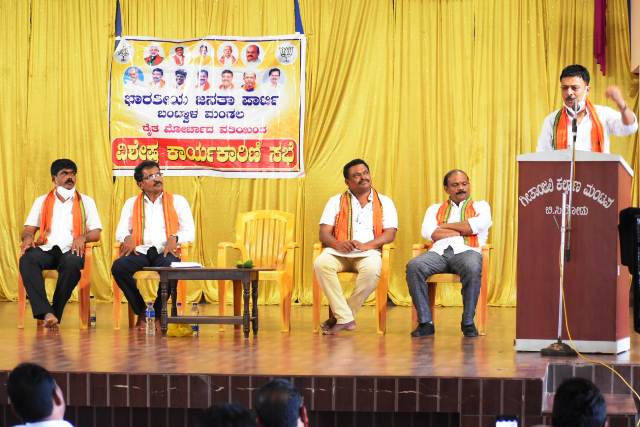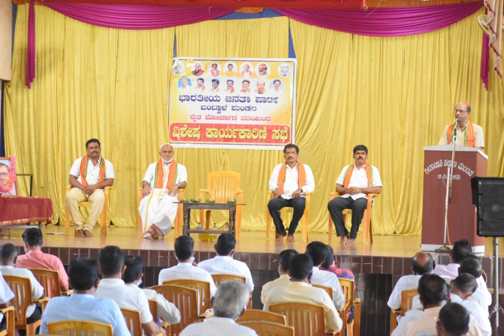 ಬಿ.ಸಿ.ರೋಡಿನ ಗೀತಾಂಜಲಿ ಸಭಾಂಗಣದಲ್ಲಿ ಬಂಟ್ವಾಳ ಬಿಜೆಪಿ ರೈತ ಮೋರ್ಚಾ ವಿಶೇಷ ಕಾರ್ಯಕಾರಿಣಿ ಸಭೆಯಲ್ಲಿ ಸಮಾರೋಪ ಭಾಷಣ ಮಾಡಿದರು. ದೇಶದ ೬೦-೭೦ ಶೇ. ಮಂದಿ ಕೃಷಿಯನ್ನೇ ಅವಲಂಬಿಸಿ ಜೀವನ ನಡೆಸುತ್ತಿದ್ದು, ಕೃಷಿ ಬೆಳೆದಾಗ ಮಾತ್ರ ದೇಶ ಬೆಳೆಯಲು ಸಾಧ್ಯ. ಮಾರುಕಟ್ಟೆ, ಯಾಂತ್ರೀಕರಣ ಕೃಷಿಯ ಮೂಲಕ ರೈತರ ಲಾಭಕ್ಕಾಗಿ ಕಾಯ್ದೆಗಳು ಬದಲಾಗಿವೆ. ಈ ವಿಚಾರವನ್ನು ರೈತ ಮೋರ್ಚಾ ಸದಸ್ಯರು ಪ್ರತಿ ರೈತರಿಗೆ ತಲುಪಿಸುವ ಕಾರ್ಯ ಮಾಡಬೇಕು ಎಂದರು.