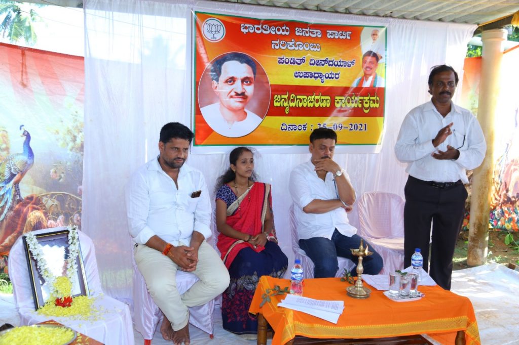 ಬಂಟ್ವಾಳ: ದೀನ್ ದಯಾಳ್ ಅವರ ದೇಶ ಪ್ರೇಮವನ್ನು ಬೆಳೆಸುವ ಪರಿಕಲ್ಪನೆಯನ್ನು ಪ್ರತಿ ಗ್ರಾಮದಲ್ಲಿ ಸಾಕಾರಗೊಳಿಸುವ ಪ್ರತಿಜ್ಞೆಯನ್ನು ಕಾರ್ಯಕರ್ತರು ಮಾಡಬೇಕು ಎಂದು ಶಾಸಕ ರಾಜೇಶ್ ನಾಯ್ಕ್ ಉಳಿಪ್ಪಾಡಿಗುತ್ತು ಅವರು ಹೇಳಿದರು.ಅವರು ಬಂಟ್ವಾಳ ವಿಧಾನ ಸಭಾ ಕ್ಷೇತ್ರದ ನರಿಕೊಂಬು ಗ್ರಾಮದ 111 ನೇ ಬೂತ್ ನಲ್ಲಿ ನಡೆದ ಪಂಡಿತ್ ದೀನ್ ದಯಾಳ್ ಉಪಾಧ್ಯಾಯ ಅವರ 105 ನೇ ಜನ್ಮ ದಿನಾಚರಣೆ ಅಂಗವಾಗಿ ಕಾರ್ಯಕ್ರಮವನ್ನು ಉದ್ಘಾಟಿಸಿ ಮಾತನಾಡಿದರು.
