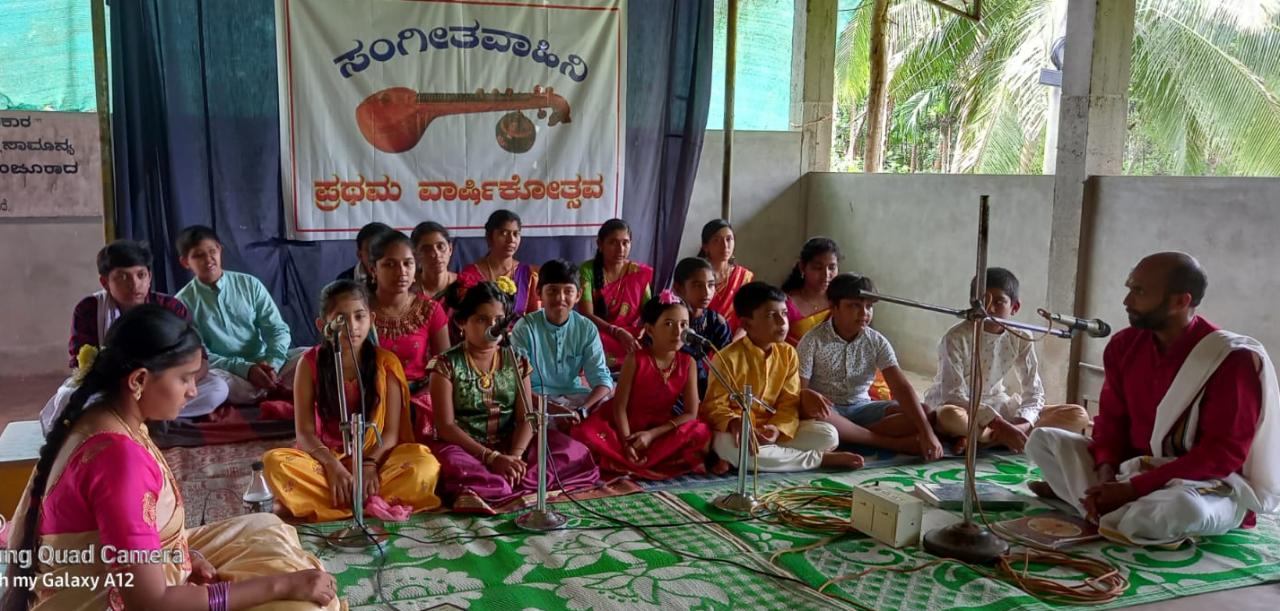 ವಿಟ್ಲ: ಬಂಟ್ವಾಳ ತಾಲೂಕಿನ ಕಲ್ಲಡ್ಕ ಶ್ರೀ ಉಮಾಶಿವ ಕ್ಷೇತ್ರ ಮತ್ತು ಪದ್ಯಾಣ ಶ್ರೀ ಮಹಾಲಿಂಗೇಶ್ವರ ದೇವಸ್ಥಾನಗಳಲ್ಲಿ ಕಳೆದ ಒಂದು ವರ್ಷದಿಂದ ಡಾ.ಮಹೇಶ್ ಪದ್ಯಾಣ ಅವರು ಉಚಿತವಾಗಿ ಸಂಗೀತ ಪಾಠಗಳನ್ನು ಆಸಕ್ತರಿಗೆ ಹೇಳಿಕೊಡುವ ಮೂಲಕ ಜ್ಞಾನಪ್ರಸಾರ ಮಾಡುತ್ತಿದ್ದು, ಇದರ ಪ್ರಥಮ ವಾರ್ಷಿಕೋತ್ಸವವು ವಿಜಯದಶಮಿಯಂದು ಪದ್ಯಾಣ ಶ್ರೀ ಮಹಾಲಿಂಗೇಶ್ವರ ದೇವಸ್ಥಾನದಲ್ಲಿ ನಡೆಯಿತು.