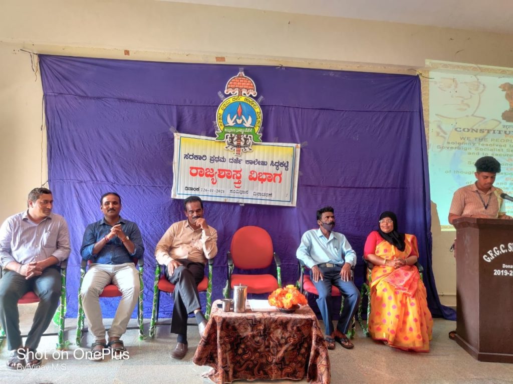 ಸಿದ್ಧಕಟ್ಟೆ ಸರ್ಕಾರಿ ಪ್ರಥಮ ದರ್ಜೆ ಕಾಲೇಜಿನಲ್ಲಿ ರಾಜ್ಯಶಾಸ್ತ್ರ ವಿಭಾಗ ವತಿಯಿಂದ ಸಂವಿಧಾನ ದಿನವನ್ನು ಆಚರಿಸಲಾಯಿತು, ಸೋಮವಾರಪೇಟೆಯ ನಿವೃತ್ತ ಪ್ರಾಧ್ಯಾಪಕ ಪ್ರೊ. ಕರಿಯಪ್ಪ ರೈ ಸಂಪನ್ಮೂಲ ವ್ಯಕ್ತಿಯಾಗಿ ಆಗಮಿಸಿ ಸಂವಿಧಾನ ಕುರಿತು ವಿವರಿಸಿದರು.