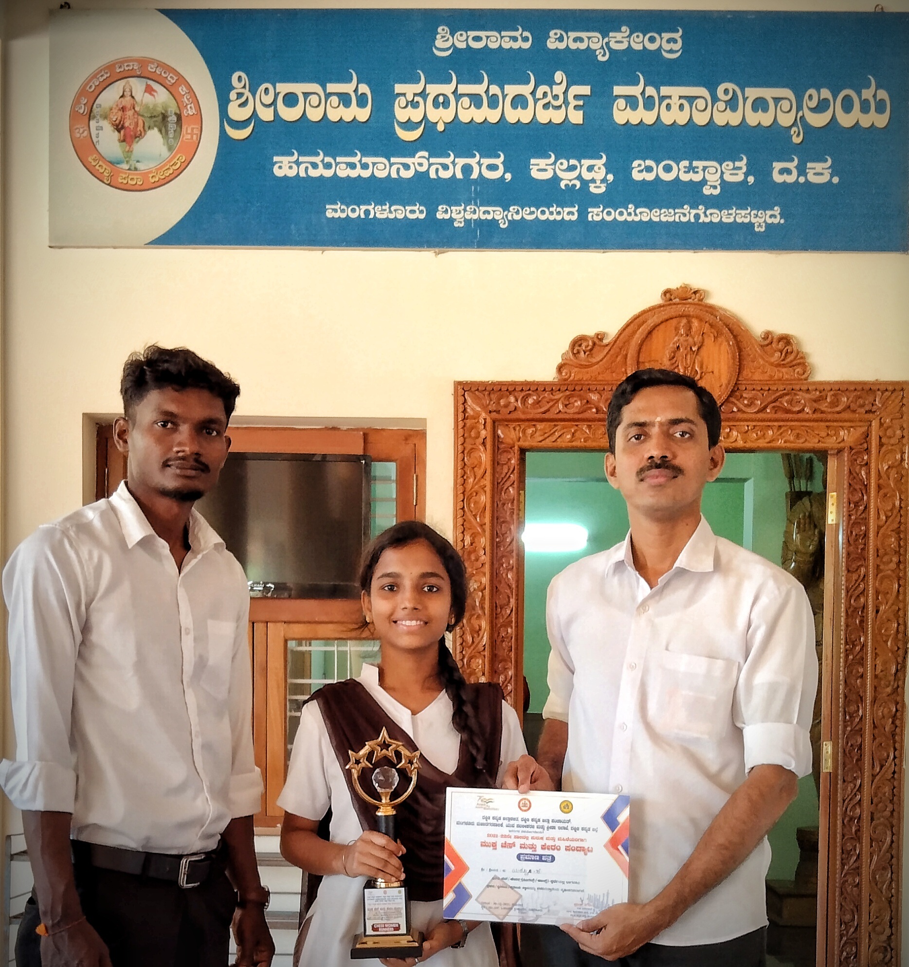 ಬಂಟ್ವಾಳ: ದಕ್ಷಿಣಕನ್ನಡ ಜಿಲ್ಲಾಡಳಿತ, ದ.ಕ. ಜಿಲ್ಲಾ ಪಂಚಾಯತ್, ಮಂಗಳೂರು ಮಹಾನಗರ ಪಾಲಿಕೆ, ಯುವಸಬಲೀಕರಣ ಮತ್ತುಕ್ರೀಡಾ ಇಲಾಖೆ, ದ.ಕ.ಜಿಲ್ಲೆ ಇವರುಗಳ ಸಹಯೋಗದೊಂದಿಗ ೨೦೨೧-೨೨ನೇ ಸಾಲಿನಲ್ಲಿ ಪುರುಷ ಮತ್ತು ಮಹಿಳೆಯರಿಗಾಗಿ ನಡೆದ ಮುಕ್ತ ಚೆಸ್ ಮತ್ತುಕೇರಂ ಪಂದ್ಯಾಟದಲ್ಲಿ ಶ್ರೀರಾಮ ಪ್ರಥಮದರ್ಜೆ ಮಹಾವಿದ್ಯಾಲಯದ ಪ್ರಥಮ ಬಿಸಿಎ ವಿದ್ಯಾರ್ಥಿನಿ ಯಶಸ್ವಿ ಕೆ. ಚೆಸ್ ಸ್ಪರ್ಧೆಯಲ್ಲಿ ಭಾಗವಹಿಸಿ ದ್ವೀತಿಯ ಸ್ಥಾನ ಪಡೆದಿರುತ್ತಾರೆ.ಇವರ ಸಾಧನೆಗೆ ಕಾಲೇಜಿನ ಪ್ರಿನ್ಸಿಪಾಲ್ ಕೃಷ್ಣಪ್ರಸಾದ್ ಕಾಯರ್ಕಟ್ಟೆ, ದೈಹಿಕ ಶಿಕ್ಷಣ ಶಿಕ್ಷಕ ವಿಘ್ನೇಶ್ ಅಭಿನಂದಿಸಿದರು.
