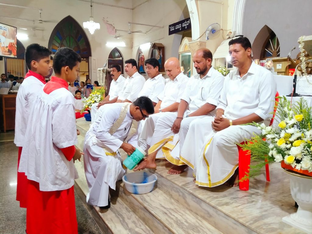 ಏಸುಕ್ರಿಸ್ತರನ್ನು ಶಿಲುಬೆಗೇರಿಸುವ ಮುನ್ನ ದಿನವಾದ ಇಂದು (ಗುರುವಾರ), ಪರಮ ಪ್ರಸಾದ ಸಂಸ್ಕಾರವನ್ನು ಕಥೊಲಿಕ್ ಪವಿತ್ರ ಸಭೆಗೆ ಅರ್ಪಿಸಿ ತನ್ನ ಶಿಷ್ಯ ರೊಂದಿಗೆ ಕೊನೆಯ ಔತಣ ಕೂಟದಲ್ಲಿ,ತನ್ನ12 ಮಂದಿ ಶಿಷ್ಯರ ಪಾದಗಳನ್ನು ತೊಳೆದು ಪವಿತ್ರ ಸಭೆಗೆ ತ್ಯಾಗ, ಕ್ಷಮೆ, ಸೇವೆಯ ಸಂದೇಶವನ್ನು ಸಾರುವ ಈ ಸಂದರ್ಭ ಲೋರೆಟ್ಟೋ ಮಾತಾ ಚರ್ಚ್ ನ ಧರ್ಮಗುರುಗಳಾದ ವಂ.ಫ್ರಾನ್ಸಿಸ್ ಕ್ರಾಸ್ತಾ ರವರು ಚರ್ಚ್ ವ್ಯಾಪ್ತಿಯ 12 ನೇಮಿಸಿದ ಸದಸ್ಯರ ಪಾದಗಳನ್ನು ತೊಳೆದು ಪವಿತ್ರ ಬಲಿ ಪೂಜೆಯನ್ನು ಅರ್ಪಿಸಿದರು. ವಂ. ಜೇಸನ್ ಮೊನಿಸ್ ದೇವರ ವಾಕ್ಯದ ಪ್ರವಚನ ನೀಡಿದರು.