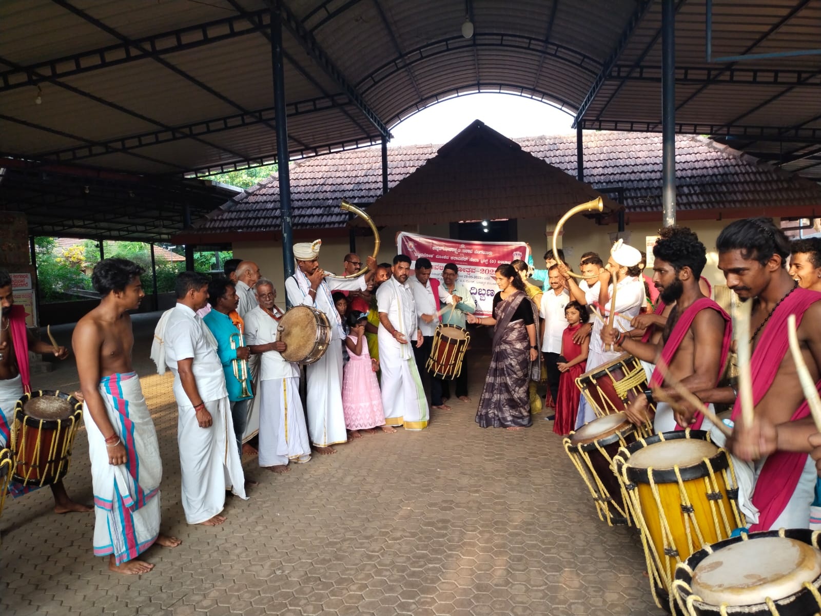 ಬಂಟ್ವಾಳ: ಚಿಣ್ಣರ ಲೋಕ ಮೋಕೆದ ಕಲಾವಿದೆರ್ ಸೇವಾ ಟ್ರಸ್ಟ್ (ರಿ) ಬಂಟ್ವಾಳ ಕನ್ನಡ ಮತ್ತು ಸಂಸ್ಕೃತಿ ಇಲಾಖೆ ಸಹಯೋಗದಲ್ಲಿ ಏ.29ರ ಶುಕ್ರವಾರದಿಂದ ಮೇ .29ರವರೆಗೆ ಒಂದು ತಿಂಗಳ ಕಾಲ ಬಿ.ಸಿ.ರೋಡಿನ ಗೋಲ್ಡನ್ ಪಾರ್ಕ್ ಮೈದಾನದಲ್ಲಿ ನಡೆಯಲಿರುವ ಕರಾವಳಿ ಕಲೋತ್ಸವದ ಜಾನಪದ ದಿಬ್ಬಣಕ್ಕೆ ಬಂಟ್ವಾಳ ತಹಸೀಲ್ದಾರ್ ರಶ್ಮಿ ಎಸ್.ಆರ್. ಚೆಂಡೆ ನುಡಿಸುವ ಮೂಲಕ ಶುಕ್ರವಾರ ಸಂಜೆ ಚಾಲನೆ ನೀಡಿದರು.