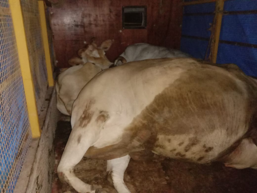 ಬೆಳಗ್ಗೆ 4.30ರ ಸುಮಾರಿಗೆ ಘಟನೆ ನಡೆದಿದೆ. ಪುಂಜಾಲಕಟ್ಟೆ ಪೊಲೀಸ್ ಎಸ್.ಐ. ಸುತೇಶ್ ರಾತ್ರಿ ರೌಂಡ್ಸ್ ಕರ್ತವ್ಯದಲ್ಲಿದ್ದ ಸಮಯ ವಾಮದಪದವು ಕಡೆಯಿಂದ ಕುದ್ಕೋಳಿ ಕಡೆಗೆ ವಾಹನವೊಂದರಲ್ಲಿ ಜಾನುವಾರುಗಳನ್ನು ಅಕ್ರಮವಾಗಿ ಸಾಗಾಟ ಮಾಡುತ್ತಿದ್ದಾರೆಂದು ಬಂದ ಖಚಿತ ಮಾಹಿತಿಯಂತೆ, ಸಿಬ್ಬಂದಿ ನವೀನ್, ಪ್ರಭಾಕರ್ ಜೊತೆ ಕುಕ್ಕಿಪ್ಪಾಡಿ ಗ್ರಾಮದ ಎಲ್ಬೇಲು ತಲುಪಿ ಬೀದಿ ದೀಪದಡಿ ವಾಹನ ತಪಾಸಣೆ ಮಾಡುತ್ತಿದ್ದ ಸಂದರ್ಭ, ಬೆಳಗ್ಗೆ ಸುಮಾರು 4.15ರ ವೇಳೆ ವಾಮದಪದವು ಕಡೆಯಿಂದ ಕುದ್ಕೋಳಿ ಕಡೆಗೆ ಟಾಟಾ ಇಂಟ್ರಾ ವಿ10 ಗೂಡ್ಸ್ ಮಿನಿ ಟೆಂಪೋ ಅತೀ ವೇಗವಾಗಿ ಬರುತ್ತಿದ್ದುದ್ದನ್ನು ಕಂಡು ವಾಹನವನ್ನು ನಿಲ್ಲಿಸಲು ಸೂಚನೆ ನೀಡಿದರು. ಈ ಸಂದರ್ಭವಾಹನವನ್ನು ನಿಲ್ಲಿಸದೇ ಮುಂದೆ ಹೋಗಿದ್ದು, ಕೂಡಲೇ ಎಸ್.ಐ. ಸಿಬ್ಬಂದಿರ ಜೊತೆ ಇಲಾಖಾ ಜೀಪಿನಲ್ಲಿ, ವಾಹನವನ್ನು ಬೆನ್ನಟ್ಟಿ ಕುದ್ಕೋಳಿ ಜಂಕ್ಷನ್ ಎಂಬಲ್ಲಿ ತಡೆದು ನಿಲ್ಲಿಸಿದ್ದು, ಆರೋಪಿಗಳು ವಾಹನದಿಂದ ಇಳಿದು ಓಡಲು ಪ್ರಯತ್ನಿಸಿದಾಗ ಎಸ್.ಐ. ಹಾಗೂ ಸಿಬ್ಬಂದಿಯವರು ಜೀಪಿನಿಂದ ಇಳಿದು ಆರೋಪಿಗಳನ್ನು ಹಿಡಿಯಲು ಪ್ರಯತ್ನಿಸಿದ್ದಾರೆ. ಈ ಸಂದರ್ಭ, ಆರೋಪಿಗಳು ಪೊಲೀಸರನ್ನು ದೂಡಿ ಪರಾರಿಯಾಗಿದ್ದಾರೆ. ವಾಹನವನ್ನು ಪರಿಶೀಲಿಸಿದಾಗ ಆರೋಪಿಗಳು ಅಕ್ರಮವಾಗಿ ಯಾವುದೇ ಪರವಾನಿಗೆ ಇಲ್ಲದೇ ಹಿಂಸಾತ್ಮಕವಾಗಿ ಎಲ್ಲಿಂದಲೋ ಕದ್ದು ತಂದ ಸುಮಾರು 4 ಅಡಿ ಎತ್ತರದ ಕ್ರೀಮ್ ಬಣ್ಣದ ದನ ಹಾಗೂ ಸುಮಾರು ಮೂರುವರೆ ಅಡಿ ಎತ್ತರದ ಕ್ರೀಮ್ ಬಣ್ಣದ ಮತ್ತೊಂದು ದನ ಹಾಗೂ ಸುಮಾರು ಮೂರುವರೆ ಅಡಿ ಎತ್ತರದ ಬೂದು ಬಣ್ಣದ ದನ ಹೀಗೆ ಮೂರು ದನಗಳನ್ನು ವಧೆ ಮಾಡುವ ಸಲುವಾಗಿ ಸಾಗಾಟ ಮಾಡುತ್ತಿದ್ದುದ್ದನ್ನು ಪತ್ತೆಹಚ್ಚಲಾಗಿದೆ. ಸೊತ್ತುಗಳನ್ನು ಸ್ವಾಧೀನ ಪಡಿಸಿಕೊಂಡು ಕ್ರಮ ಜರುಗಿಸಿದ್ದು, ಸ್ವಾಧೀನಪಡಿಸಿಕೊಂಡ ದನಗಳ ಮೌಲ್ಯ ಸುಮಾರು 20 ಸಾವಿರ ರೂ, ವಾಹನದ ಅಂದಾಜು ಮೌಲ್ಯ 6 ಲಕ್ಷ ರೂ ಹಾಗೂ ಅದರೊಳಗಿದ್ದ 2 ಮೊಐಲ್ ಸೇರಿ ಒಟ್ಟು 6,40,000 ರೂ ಮೊತ್ತದ ವಸ್ತುಗಳನ್ನು ಸ್ವಾಧೀನಪಡಿಸಿಕೊಳ್ಳಲಾಗಿದೆ. ಪುಂಜಾಲಕಟ್ಟೆ ಪೊಲೀಸ್ ಠಾಣೆಯಲ್ಲಿ ಕರ್ನಾಟಕ ಗೋವಧೆ ಪ್ರತಿಬಂಧಕ ಹಾಗೂ ಜಾನುವಾರು ಸಂರಕ್ಷಣಾ ಅಧಿನಿಯಮ 1964 & ಕಲಂ: 11(1)(ಡಿ) ಪ್ರಾಣಿ ಹಿಂಸೆ ತಡೆ ಮತ್ತು ಜಾನುವಾರು ಪರಿರಕ್ಷಣೆ ಅಧಿನಿಯಮ ಕಾಯ್ದೆ 1960 & ಕಲಂ: 66 ಜೊತೆಗೆ 192(ಎ) ಐ ಎಂ ವಿ ಕಾಯ್ದೆ & ಕಲಂ: 41(1)(ಡಿ) ಜೊತೆಗೆ 102 ಸಿಆರ್ಪಿಸಿ ಮತ್ತು 379, 186, 353, 323 ಐಪಿಸಿ ಅಡಿ ಪ್ರಕರಣ ದಾಖಲಾಗಿದೆ.