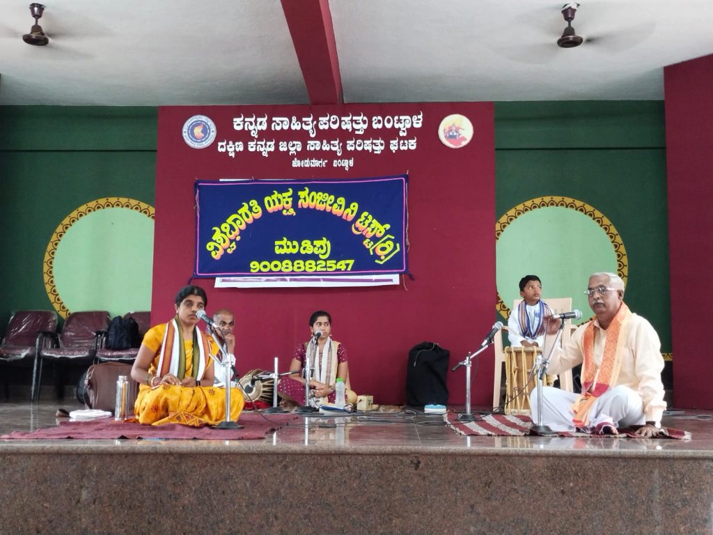 ಬಂಟ್ವಾಳ: ಬಂಟ್ವಾಳದ ಕನ್ನಡ ಭವನದಲ್ಲಿ ವಿಶ್ವಭಾರತಿ ಯಕ್ಷಸಂಜೀವಿನಿ ಟ್ರಸ್ಟ್ ಮುಡಿಪು ವತಿಯಿಂದ ಕಸಾಪ ಸಹಯೋಗದೊಂದಿಗೆ ವಿಶ್ವಭಾರತಿ ಸಪ್ತ ಸಾಪ್ತಾಹಿಕ ಕೂಟ ಸರಣಿ ತಾಳಮದ್ದಳೆಗೆ ಶನಿವಾರ ಚಾಲನೆ ನೀಡಲಾಯಿತು.