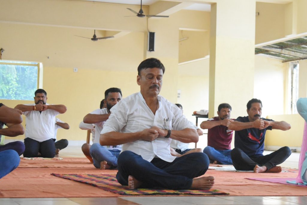 ಬಂಟ್ವಾಳ: ಬಿ.ಸಿ.ರೋಡಿನ ರಂಗೋಲಿ ಸಭಾಂಗಣದಲ್ಲಿ ಮಂಗಳವಾರ ಬೆಳಗ್ಗೆ ವಿಶ್ವ ಯೋಗ ದಿನಾಚರಣೆ ಅಂಗವಾಗಿ ಬಿಜೆಪಿ ಬಂಟ್ವಾಳ ಪುರಸಭೆ ಮಹಾಶಕ್ತಿಕೇಂದ್ರದ ವತಿಯಿಂದ ನಡೆದ ಕಾರ್ಯಕ್ರಮದಲ್ಲಿ ಬಂಟ್ವಾಳ ಶಾಸಕ ರಾಜೇಶ್ ನಾಯ್ಕ್ ಉಳಿಪ್ಪಾಡಿ ಭಾಗವಹಿಸಿ ಯೋಗಾಭ್ಯಾಸ ನಡೆಸಿದರು.