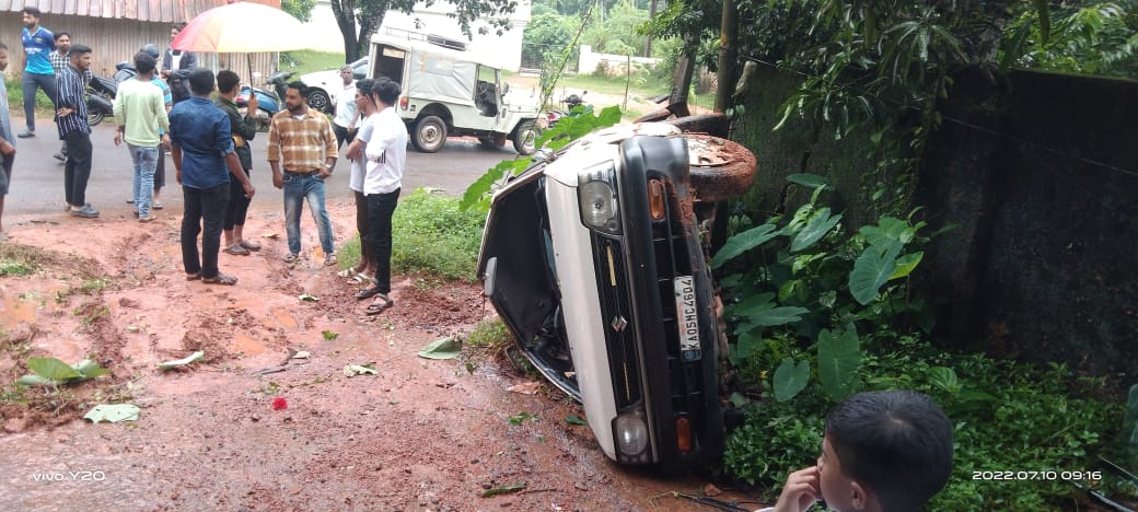 ಸಾಲೆತ್ತೂರು ಸಮೀಪ ಕರೈ ಎಂಬಲ್ಲಿ ಮಗುಚಿದ ಕಾರು