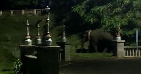 ಸಂಗೀತ ಕಾರಂಜಿ ಪ್ರದರ್ಶನ ಸಂದರ್ಭ ಆಗಮಿಸಿದ ಕಾಡಾನೆ ಕಂಡು ಪ್ರವಾಸಿಗರು ಬೆರಗಾಗಿದ್ದು, ದಿಕ್ಕಾಪಾಲಾಗಿ ಓಡಲಾರಂಭಿಸಿದ್ದಾರೆ.