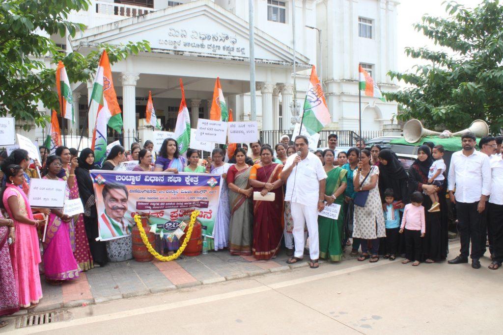 ಪ್ರತಿಭಟನೆಗೆ ಚಾಲನೆ ನೀಡಿದ ಮಾಜಿ ಸಚಿವ ಬಿ.ರಮಾನಾಥ ರೈ ಮಾತನಾಡಿ, ಜನರ ನೋವನ್ನು ಅರಿಯದ ಕೇಂದ್ರ ಸರ್ಕಾರದಿಂದ ತೈಲ ಬೆಲೆ ಸಹಿತ ಧಾನ್ಯಗಳ ಬೆಲೆ ಏರಿಸುವ ಮೂಲಕ ಹೊಡೆತ ನೀಡಿದೆ ಎಂದರು. ಕೆ.ಪಿ.ಸಿ.ಸಿ.ಪ್ರಧಾನ ಕಾರ್ಯದರ್ಶಿ ಮಮತಾ ಗಟ್ಟಿ ಮಾತನಾಡಿ ಬಿಜೆಪಿ ಇಂದು ಜನರ ಬದುಕಿನ ಹಕ್ಕನನ್ನೇ ಕಸಿದುಕೊಂಡಿದೆ ಎಂದರು.