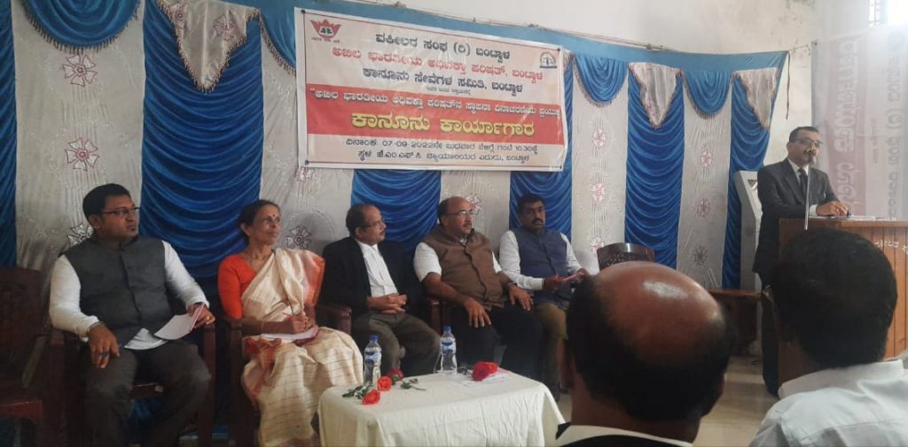 ಅಧಿವಕ್ತ ಪರಿಷತ್, ಬಂಟ್ವಾಳ, ವಕೀಲರ ಸಂಘ(ರಿ), ಬಂಟ್ವಾಳ ಮತ್ತು ತಾಲೂಕು ಕಾನೂನು ಸೇವೆಗಳ ಸಮಿತಿ, ಬಂಟ್ವಾಳ ಆಶ್ರಯದಲ್ಲಿ ಕಾರ್ಯಕ್ರಮ ಆಯೋಜಿಸಿದ್ದು, ಕಾರ್ಯಕ್ರಮವನ್ನು ಅಧಿವಕ್ತ ಪರಿಷತ್ ಕರ್ನಾಟಕ ದಕ್ಷಿಣ ಪ್ರಾಂತದ ರಾಜ್ಯಾಧ್ಯಕ್ಷ ರವೀಂದ್ರನಾಥ ಪಿ. ಎಸ್ ಉದ್ಘಾಟಿಸಿದರು.