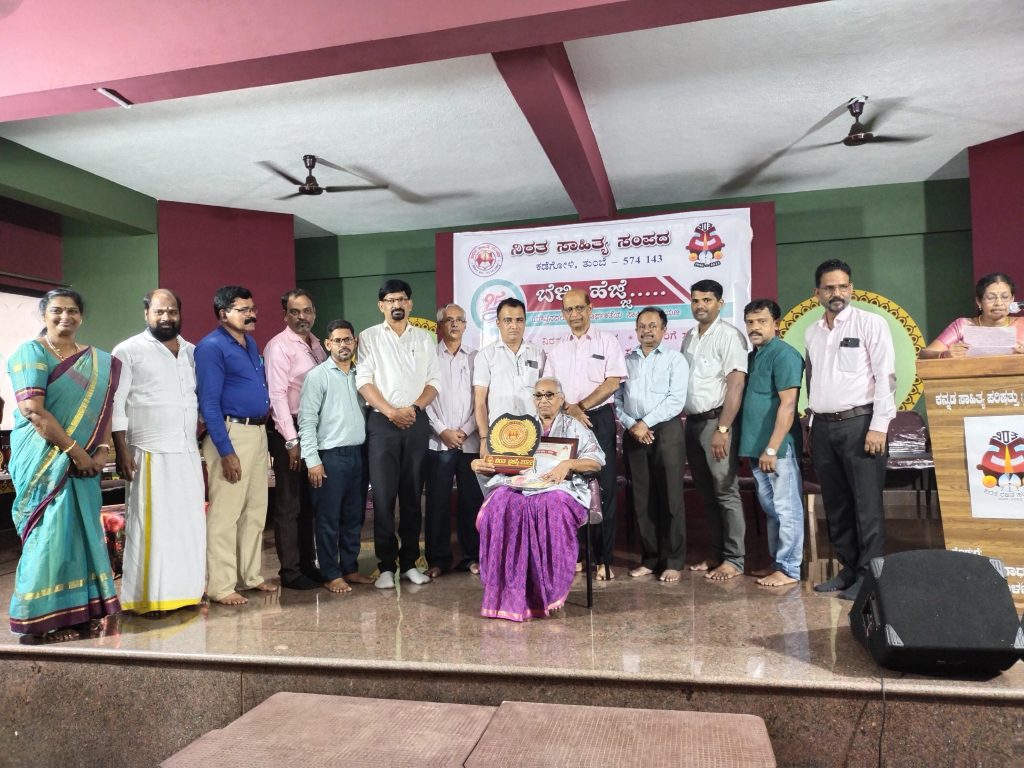 ಬಂಟ್ವಾಳ: ತುಂಬೆ ಕಡೆಗೋಳಿಯ ನಿರತ ಸಾಹಿತ್ಯ ಸಂಪದ ರಜತ ಸಂಭ್ರಮ ಹಿನ್ನೆಲೆಯಲ್ಲಿ ಬಿ .ಸಿ.ರೋಡಿನ ಕೈಕುಂಜೆ ಕನ್ನಡ ಭವನದಲ್ಲಿ ಭಾನುವಾರ ನಡೆದ ಬೆಳ್ಳಿಹೆಜ್ಜೆ ಕಾರ್ಯಕ್ರಮದಲ್ಲಿ ಸಾಹಿತ್ಯ ಕ್ಷೇತ್ರದಲ್ಲಿ ಮಾಡಿರುವ ಸಾಧನೆಗಾಗಿ ಪ್ರೊ.ಚಂದ್ರಕಲಾ ನಂದಾವರ ಅವರಿಗೆ ನಿರತ ಪ್ರಶಸ್ತಿ-೨೦೨೨ನ್ನು ಪ್ರದಾನ ಮಾಡಲಾಯಿತು.
