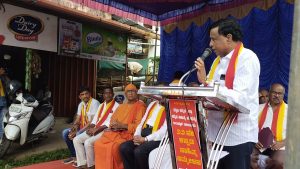 ಮೆರವಣಿಗೆಯಲ್ಲಿ ಆಶಯ ಭಾಷಣ ಮಾಡುತ್ತಿರುವ ರಾಜ್ಯ ರಾಜ್ಯೋತ್ಸವ ಪ್ರಶಸ್ತಿ ಪುರಸ್ಕೃತ ಹಿರಿಯ ಯಕ್ಷಗಾನ ಕಲಾವಿದ ಸರಪಾಡಿ ಅಶೋಕ ಶೆಟ್ಟಿ