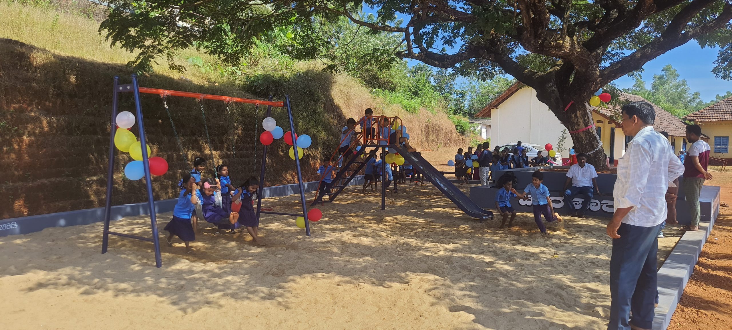 ಮಕ್ಕಳು ಖುಷಿಯಿಂದ ಜಾರುಬಂಡಿ ಆಟವಾಡುತ್ತಾ, ಉಯ್ಯಾಲೆಯಲ್ಲಿ ವಿಹರಿಸುತ್ತಾ, ಮೆರಿಗೋರೌಂಡ್ ಸಹಿತ ಆಟಿಕೆಗಳನ್ನು ಉಪಯೋಗಿಸುವುದರ ಮೂಲಕ ಈ ಶಾಲೆಗೆ ಬಂದರೆ ಆಟದೊಂದಿಗೆ ಪಾಠ ಎಂಬ ಪರಿಕಲ್ಪನೆಯನ್ನು ಹಿರಿಯ ವಿದ್ಯಾರ್ಥಿಗಳು ಒದಗಿಸಿಕೊಟ್ಟಿದ್ದಾರೆ.