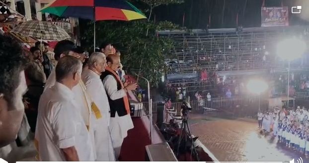 ಬಂಟ್ವಾಳ: ಮುಖ್ಯಮಂತ್ರಿ ಬಸವರಾಜ ಬೊಮ್ಮಾಯಿ ಅವರು ಸುರಿಯುವ ಮಳೆಯನ್ನು ಲೆಕ್ಕಿಸದೆ ಶನಿವಾರ ರಾತ್ರಿ ಬಂಟ್ವಾಳ ತಾಲೂಕು ಕಲ್ಲಡ್ಕದ ಶ್ರೀರಾಮ ವಿದ್ಯಾಕೇಂದ್ರದಲ್ಲಿ ನಡೆದ ಹೊನಲು ಬೆಳಕಿನ ಕ್ರೀಡೋತ್ಸವವನ್ನು ವೀಕ್ಷಿಸಿದರು.