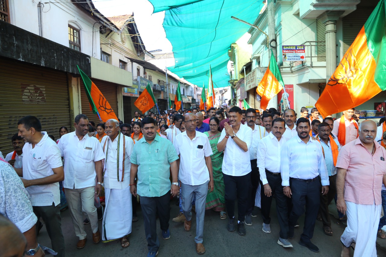 ಬಂಟ್ವಾಳದ ಶ್ರೀ ತಿರುಮಲ ವೆಂಕಟರಮಣ ದೇವಸ್ಥಾನದ ಎದುರಿನಿಂದ ಶುಕ್ರವಾರ ಬೆಳಗ್ಗೆ ಆರಂಭಗೊಂಡ ಬಂಟ್ವಾಳ ಬಿಜೆಪಿ ವತಿಯಿಂದ ಶಾಸಕ ರಾಜೇಶ್ ನಾಯ್ಕ್ ಉಳಿಪ್ಪಾಡಿ ಅವರ ಏಳನೇ ದಿನದ ಪಾದಯಾತ್ರೆಗೆ ಮಂಗಳೂರು ದಕ್ಷಿಣ ಕ್ಷೇತ್ರದ ಶಾಸಕ ಕೆ.ವೇದವ್ಯಾಸ ಕಾಮತ್ ಸಾಥ್ ನೀಡಿದರು.