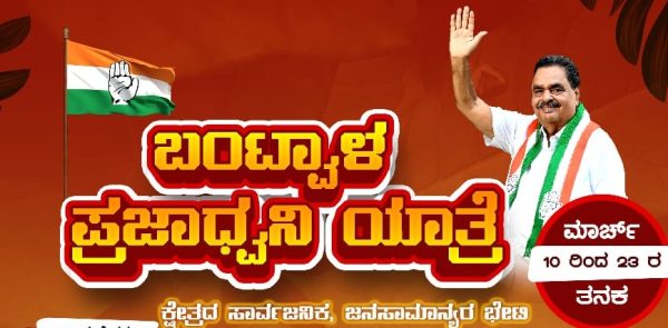 ಕಾಂಗ್ರೆಸ್ ನ ಬಂಟ್ವಾಳ ಪ್ರಜಾಧ್ವನಿ ಯಾತ್ರೆ ನಾಳೆಯಿಂದ, ವಿವರ ಇಲ್ಲಿದೆ