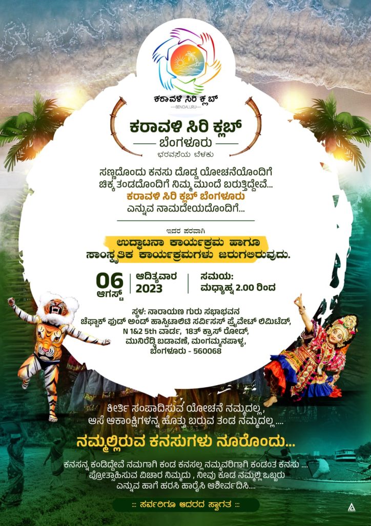 ಬೆಂಗಳೂರಿನಲ್ಲಿ ಕರಾವಳಿ ಸಿರಿ ಕ್ಲಬ್ ಆರಂಭಗೊಳ್ಳಲಿದೆ. ಸಂಘಟನೆ ಮೂಲಕ ಬಲಯುತಾರಾಗಿ ಸಮಾಜದಲ್ಲಿರುವ ದುರ್ಬಲರಿಗೆ ಆರ್ಥಿಕ ಸಹಾಯ, ಸಾಮಾಜಿಕ ಪಿಡುಗುಗಳ ವಿರುದ್ಧ ಧ್ವನಿಯಾಗುವುದು, ರಕ್ತದಾನ ಯೋಜನೆ,ಸಮಾಜದಲ್ಲಿ ಆರ್ಥಿಕವಾಗಿ ಕಡುಬಡತನ ಸ್ಥಿತಿಯಲ್ಲಿ ಇರುವ ಪ್ರತಿಭಾವಂತ ವಿದ್ಯಾರ್ಥಿಗಳಿಗೆ ನೆರವು, ನಮ್ಮ ನುಡಿ ,ನಮ್ಮ ಸಂಸ್ಕೃತಿ ಬೆಳೆಸುವ ಕಾರ್ಯ ಹಾಗೂ ಸಾಂಸ್ಕೃತಿಕ ಕಾರ್ಯಕ್ರಮಗಳ ಯೋಚನೆ, ಕ್ರೀಡೆಗೆ ಪ್ರಾಮುಖ್ಯತೆ ಹಾಗೂ ಪ್ರತಿಭಾವಂತ ಬಡ ಕ್ರೀಡಾಪಟುಗಳಿಗೆ ಆರ್ಥಿಕ ಸಹಾಯ, ಸ್ವಚ್ಛ ಭಾರತದ ಕನಸು, ಪ್ರಾಕೃತಿಕ ವಿಕೋಪದ ಸಂದರ್ಭದಲ್ಲಿ ಕೈಲಾದ ಸಹಾಯ ಹಾಗೂ ಸ್ವಯಂಸೇವಕರಾಗಿ ಕಾರ್ಯನಿರ್ವಹಿಸುವುದು ಅನಾರೋಗ್ಯದಿಂದ ಬಳಲುತ್ತಿರುವವರಿಗೆ ಕೈಲಾದ ಆರ್ಥಿಕ ಸಹಾಯ, ಆಶ್ರಮಗಳಿಗೆ ಕೈಲಾದ ಆರ್ಥಿಕ ಸಹಾಯ, ಅಳಿವಿನಂಚಿನಲ್ಲಿರುವ ಕನ್ನಡ ಶಾಲೆಗೆ ಹೊಸ ರೂಪ ನೀಡುವುದು,ನಿರುದ್ಯೋಗಿಳಿಗೆ ಉದ್ಯೋಗ ಮಾಹಿತ ನೀಡುವುದು ಹಾಗೂ ಉದ್ಯೋಗ ಮೇಳ ಯೋಜನೆ, ಭಾರತೀಯ ಸೇನೆಗೆ ಸೇರಲು ಬಯಸುವ ಬಡ ಯುವಕ ಯುವತಿಯರಿಗೆ ಆರ್ಥಿಕ ಸಹಾಯ, ಕಾರ್ಮಿಕರ ಹಕ್ಕುಗಳ ಪರವಾಗಿ ಧ್ವನಿಯಾಗಿರುವುದು, ಶೋಷಣೆ ಒಳಗಾದ ವಿದ್ಯಾರ್ಥಿಗಳ ಪರ ನಿಲ್ಲುವುದು , ಪರಿಸರ ಸಂರಕ್ಷಣೆಯ ಅರಿವು ಮೂಡಿಸುವ ಕಾರ್ಯಕ್ರಮ ನಾವು ನಮ್ಮವರು ಎನ್ನುವ ಯೋಚನೆಯೊಂದಿಗೆ ಸಂಘಟನೆ ಮೂಲಕ ಬಲಯುತರಾಗಿ ಸಾಮಾಜಿಕ ಸೇವೆ ಹಾಗೂ ಸಾಮಾಜಿಕ ಚಟುವಟಿಕೆಯಲ್ಲಿ ತೊಡಗುವುದು ಯಾವುದೇ ಜಾತಿ ಧರ್ಮ ಬೇಧವಿಲ್ಲದೆ ಸದಾ ಸಾಮಾಜಿಕ ಚಟುವಟಿಕೆಗಳಿಗೂ ಸಿದ್ಧವಾಗುವ ಕನಸಿಕೊಂದಿಗೆ ಕರಾವಳಿ ಸಿರಿ ಕ್ಲಬ್ ಆರಂಭಗೊಳ್ಳಲಿದೆ. ಬೆಂಗಳೂರಿನ ಮಂಗಮ್ಮನಪಾಳ್ಯದ ಮುನಿರೆಡ್ಡಿ ಬಡಾವಣೆಯ 18ನೇ ಕ್ರಾಸ್ ರೋಡ್, ಎನ್.1ಮತ್ತು 2, 5ನೇ ವಾರ್ಡ್ ನಲ್ಲಿ ಚೆಫ್ಟಾಕ್ ಫುಡ್ ಅಂಡ್ ಹಾಸ್ಪಿಟಾಲಿಟಿ ಸರ್ವೀಸಸ್ ಪ್ರೈ ಲಿಮಿಟೆಡ್ ನಾರಾಯಣಗುರು ಸಭಾಭವನದಲ್ಲಿ ಕ್ಲಬ್ ಆಗಸ್ಟ್ 6ರಂದು ಆರಂಭಗೊಳ್ಳಲಿದೆ.