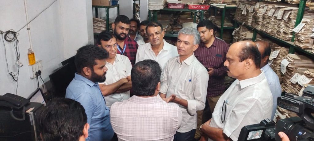 ದಾಖಲೆಗಳ ಡಿಜಿಟಲೀಕರಣ: ಮಂಗಳೂರು ಪ್ರವಾಸದ ವೇಳೆ ಅನಿರೀಕ್ಷಿತವಾಗಿ ಮಂಗಳೂರು ರೆಕಾರ್ಡ್ ರೂಮ್ ಗೆ ಭೇಟಿ ನೀಡಿದ ಸಚಿವ ಕೃಷ್ಣ ಬೈರೇಗೌಡಅವರು ನೂರು ವರ್ಷಗಳಷ್ಟು ಹಳೆಯ ದಾಖಲೆಗಳನ್ನು ವೀಕ್ಷಿಸಿದರು. ಅಲ್ಲದೆ, ಇಷ್ಟು ಹಳೆಯ ದಾಖಲೆಗಳನ್ನು ಹೇಗೆ ರಕ್ಷಣೆ ಮಾಡುತ್ತಿದ್ದೀರಿ? ಎಂದು ಅಧಿಕಾರಿಗಳಿಗೆ ಮಾಹಿತಿಯನ್ನು ಕೇಳಿ ಪಡೆದರು.