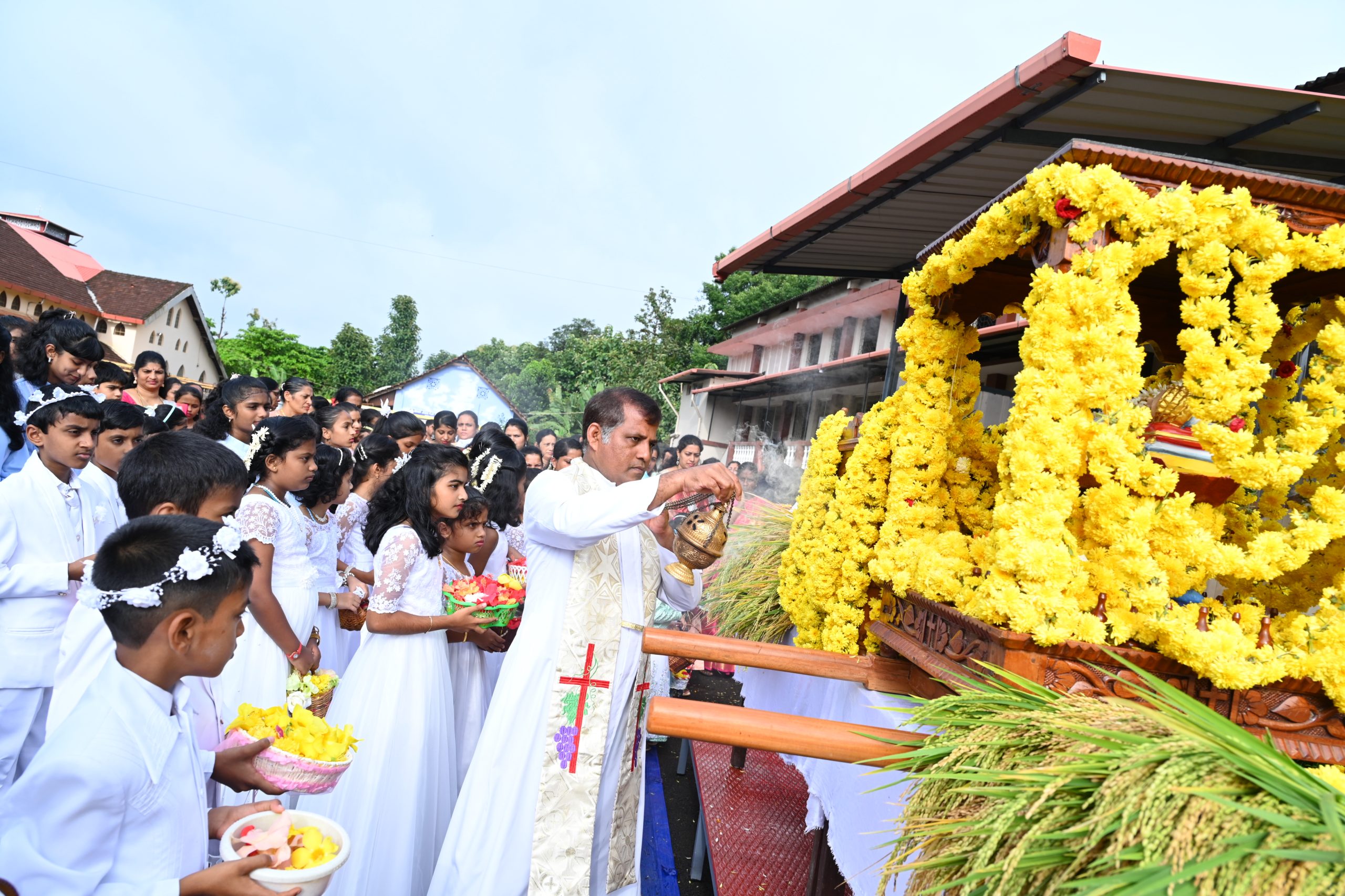 ತೆರೆದ ಆಂಗಣದಲ್ಲಿ ಮರಿಯಮ್ಮನವರ ಗ್ರೋಟ್ಟೋ ಮುಂಭಾಗದಲ್ಲಿ ಹೊಸ ತೆನೆ ಯನ್ನು ಇನ್ಫೆಂಟ್ ಜೀಸಸ್ ಆಂಗ್ಲ ಮಾಧ್ಯಮ ಶಾಲೆಯ ಪ್ರಾಂಶುಪಾಲರಾದ ವಂದನೀಯ ಮೆಲ್ವಿನ್ ಲೋಬೊರವರಿಂದ ಆಶೀರ್ವಚನಗೊಂಡು, ಬಾಲ ಯೇಸು ದೇವಾಲಯದಲ್ಲಿ ದೇವಾಲಯದ ಸಹಾಯಕ ಧರ್ಮಗುರುಗಳಾದ ವಂದನೀಯ ರಾಹುಲ್ ಡೆಕ್ಸ್ಟರ್ ಡಿ ಸೋಜಾರಿಂದ ಶುಭವಾಚನೆ ಯೊಂದಿಗೆ ದೇವಾಲಯದ ಪ್ರಧಾನ ಧರ್ಮಗುರುಗಳಾದ ಆತೀ ವಂದನೀಯ ವಲೇರಿಯನ್ ಡಿಸೋಜರವರಿಂದ ದಿವ್ಯ ಬಲಿಪೂಜೆ ಅರ್ಪಿಸಲಾಯಿತು.