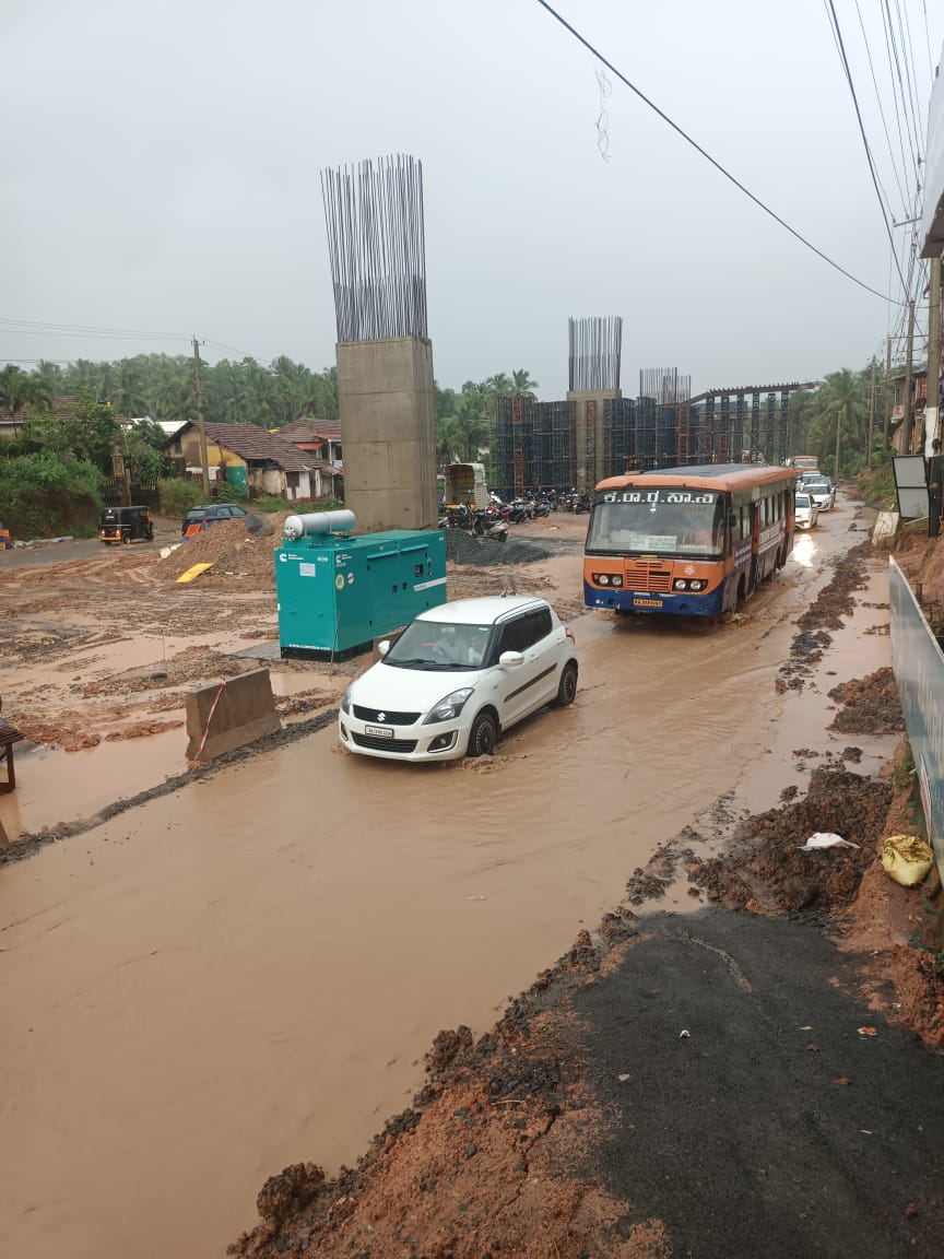 ಧಾರಾಕಾರ ಮಳೆ ಸುರಿಯುತ್ತಿದ್ದು, ಬಂಟ್ವಾಳ ತಾಲೂಕಿನ ರಾಷ್ಟ್ರೀಯ ಹೆದ್ದಾರಿ ಕಲ್ಲಡ್ಕದಲ್ಲಿ ರಸ್ತೆಯೇ ಕಾಣದಾಗಿದೆ. ಬಸ್ಸಿಗೆ ಕಾಯುವವರು ಪರದಾಟ ಅನುಭವಿಸುತ್ತಿದ್ದರೆ, ದ್ವಿಚಕ್ರ ವಾಹನ ಸವಾರರು ಓಡಾಡಲೂ ಕಷ್ಟವಾಗಿದೆ. ಇನ್ನು ಉಳಿದ ವಾಹನದವರ ಗತಿ ಹೇಳಿ ಪ್ರಯೋಜನವಿಲ್ಲ. ಚಿತ್ರಗಳೇ ಎಲ್ಲವನ್ನೂ ಹೇಳುತ್ತದೆ. PHOTOS – VARUN KALLADKA