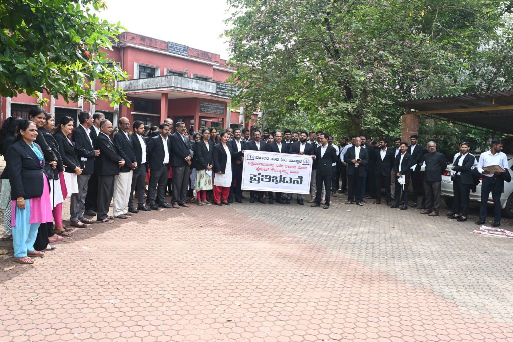 ಚಿಕ್ಕಮಗಳೂರಿನಲ್ಲಿ ಯುವ ವಕೀಲರಾದ ಪ್ರೀತಮ್ ಎಂ ಟಿ ಅವರಿಗೆ ಪೊಲೀಸ್ ದೌರ್ಜನ್ಯವಾಗಿದೆ ಎಂದು ಆರೋಪಿಸಿ, ಬಂಟ್ವಾಳದ ವಕೀಲರ ಸಂಘದ ವತಿಯಿಂದ ಸೋಮವಾರ ಜೆ ಎಂ ಎಫ್ ಸಿ ನ್ಯಾಯಾಲಯ ಎದುರು ಪ್ರತಿಭಟನೆ ನಡೆಯಿತು. ಬಳಿಕ ಬಂಟ್ವಾಳ ತಹಸೀಲ್ದಾರ್ ಮೂಲಕ ಗೃಹಸಚಿವರಿಗೆ ಮನವಿ ಸಲ್ಲಿಸಲಾಯಿತು. ಆರೋಪಿ ಪೋಲೀಸರನ್ನು ತಕ್ಷಣ ಬಂಧಿಸಬೇಕು ಮತ್ತು ಅವರ ವಿರುದ್ದ ಕಾನೂನಾತ್ಮಕ ಕ್ರಮ ಕೈಗೊಳ್ಳಬೇಕು ಮತ್ತು ತಕ್ಷಣ ಸರಕಾರ ವಕೀಲರ ರಕ್ಷಣಾ ಕಾಯಿದೆ ಜಾರಿಗೊಳಿಸಬೇಕು ಎಂದು ಈ ಸಂದರ್ಭ ಪ್ರತಿಭಟನಾಕಾರರು ಒತ್ತಾಯಿಸಿದರು.