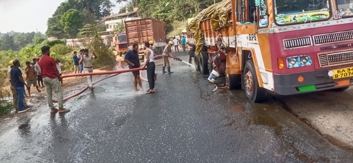 ಲಾರಿಗಳೆರಡರ ತೈಲ ತುಂಬಿದ ಟ್ಯಾಂಕ್ ಸ್ಪೋಟಗೊಂಡು ತೈಲ ಪೂರ್ತಿ ರಸ್ತೆಯಲ್ಲಿ ಚೆಲ್ಲಿದ್ದು,ವಾಹನಗಳ ಸಂಚಾರಕ್ಕೆ ಅಡಚಣೆ ಉಂಟಾಯಿತು. ಪರಿಣಾಮ ಒಂದು ಬದಿಯಿಂದ ಮೆಲ್ಕಾರ್ ವರೆಗೂ ಇನ್ನೊಂದು ಬದಿಯಿಂದ ಕಲ್ಲಡ್ಕವರೆಗೂ ವಾಹನಗಳು ಮುಂದೆ ಚಲಿಸಲಾಗದೆ ಸಾಲಿನಲ್ಲಿ ನಿಂತ ದೃಶ್ಯ ಕಂಡು ಬಂತು.
