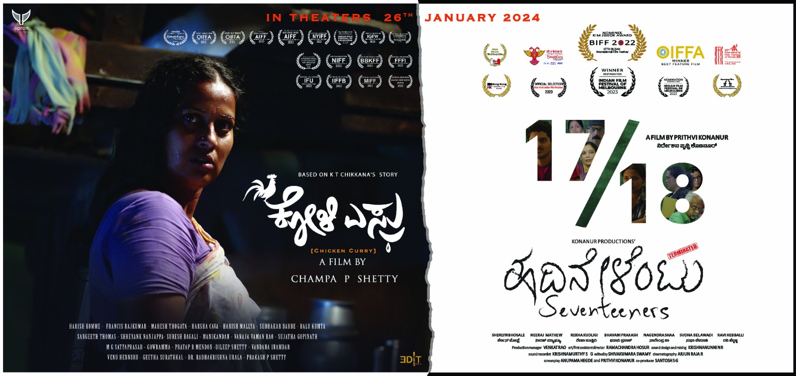 ಚಂಪಾ.ಪಿ. ಶೆಟ್ಟಿ ನಿರ್ದೇಶನದ “ಕೋಳಿ ಎಸ್ರು” ಹಾಗೂ ಪೃಥ್ವಿ ಕೊಣನೂರು ನಿರ್ದೇಶಿಸಿರುವ “ಹದಿನೇಳೆಂಟು” ಚಿತ್ರಗಳು ಈ ವರ್ಷ ಅಂತಾರಾಷ್ಟ್ರೀಯ ಮಟ್ಟದಲ್ಲಿ ಕನ್ನಡಕ್ಕೆ ಹೆಸರು ತಂದು ಕೊಟ್ಟಿರುವಂತಹ ಎರಡು ಚಿತ್ರಗಳು. ಜನವರಿ 26 ರಂದು ಈ ಎರಡೂ ಚಿತ್ರಗಳು ಕರ್ನಾಟಕದಾದ್ಯಂತ ಎಲ್ಲಾ ಮಲ್ಟಿಪ್ಲೆಕ್ಸ್ ಚಿತ್ರಮಂದಿರಗಳಲ್ಲಿ ಬಿಡುಗಡೆಯಾಗಲಿದೆ.