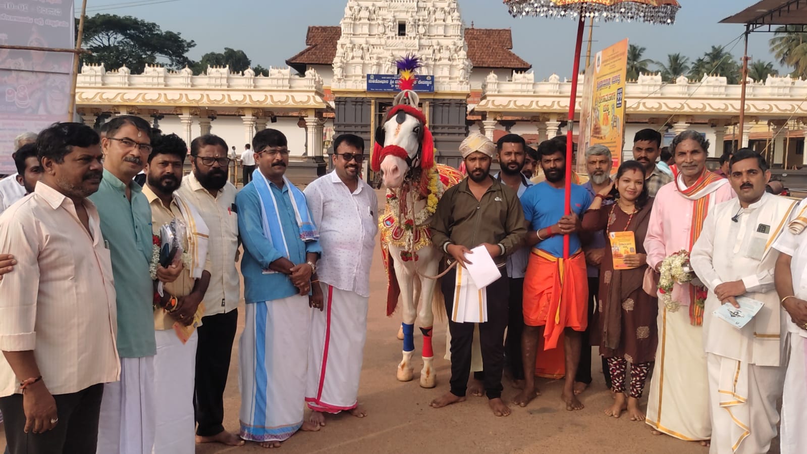 ಪುಷ್ಪಾಲಂಕೃತಗೊಂಡ ಬಿಳಿ ಕುದುರೆಗೆ ತೀರ್ಥ ಸಂಪ್ರೋಕ್ಷಣೆ ಮಾಡಿ ಪವಿತ್ರಗೊಳಿಸಲಾಯಿತು. ಮಹಾಲಿಂಗೇಶ್ವರನ ಗಂಧ ಪ್ರಸಾದ ಹಣೆಗೆ ಹಚ್ಚಿ ಅಭಯ ಪ್ರದಾನ ಮಾಡಲಾಯಿತು. ಹೊಸ ಹುಮ್ಮಸ್ಸಿನಿಂದ ಹೊಸ ಜವಾಬ್ದಾರಿ ಧರಿಸಿಕೊಂಡ ಶ್ವೇತಾಶ್ವ ಲವಲವಿಕೆಯಿಂದ ಅಲಂಕೃತ ವಾಹನವನ್ನೇರಿ ಹೊರಟೇ ಬಿಟ್ಟಿತು.