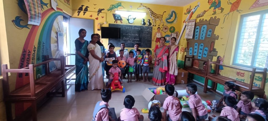 ಬಿ.ಸಿ.ರೋಡಿನ ಅಜ್ಜಿಬೆಟ್ಟಿನಲ್ಲಿರುವ ಬಿ.ಮೂಡ ಸರಕಾರಿ ಹಿರಿಯ ಪ್ರಾಥಮಿಕ ಶಾಲೆಯಲ್ಲಿ ಎಲ್.ಕೆ.ಜಿ ಮತ್ತು ಯು.ಕೆ.ಜಿಯ ವಿದ್ಯಾರ್ಥಿಗಳ ಕಲಿಕೆಗೆ ಪೂರಕವಾಗುವಂತೆ ಬ್ಯಾಂಕ್ ಆಫ್ ಬರೋಡಾದ ಬಂಟ್ವಾಳ ಶಾಖೆ ವತಿಯಿಂದ ಕಲಿಕಾ ಆಟಿಕೆಗಳನ್ನು ಮಂಗಳವಾರ ಹಸ್ತಾಂತರಿಸಲಾಯಿತು. ಬ್ಯಾಂಕಿನ ಅಸಿಸ್ಟೆಂಟ್ ಮ್ಯಾನೇಜರ್ ವಾಮನ್ ನಾಯಕ್ ಮತ್ತು ಸಿಬಂದಿ ಹಾಗೂ ಹಳೆ ವಿದ್ಯಾರ್ಥಿ ಚೇತನ್ ಕುಮಾರ್ ಅವರು ಮುಖ್ಯೋಪಾಧ್ಯಾಯರಾದ ಲಕ್ಷ್ಮೀ ಕೆ. ಅವರಿಗೆ ಹಸ್ತಾಂತರ ಮಾಡಿ ಇದು ಮಕ್ಕಳಿಗೆ ಉಪಯೋಗವಾಗಲಿ ಎಂದು ಶುಭ ಹಾರೈಸಿದರು.ಈ ಸಂದರ್ಭ ಎಸ್.ಡಿ.ಎಂ.ಸಿ. ಅಧ್ಯಕ್ಷ ಹರೀಶ ಮಾಂಬಾಡಿ, ಸಹಶಿಕ್ಷಕರಾದ ತಾಹಿರಾ, ಸುಶೀಲಾ, ಶಿಕ್ಷಕಿಯರಾದ ಪೂರ್ಣಿಮಾ, ಲಾವಣ್ಯ ಉಪಸ್ಥಿತರಿದ್ದರು.