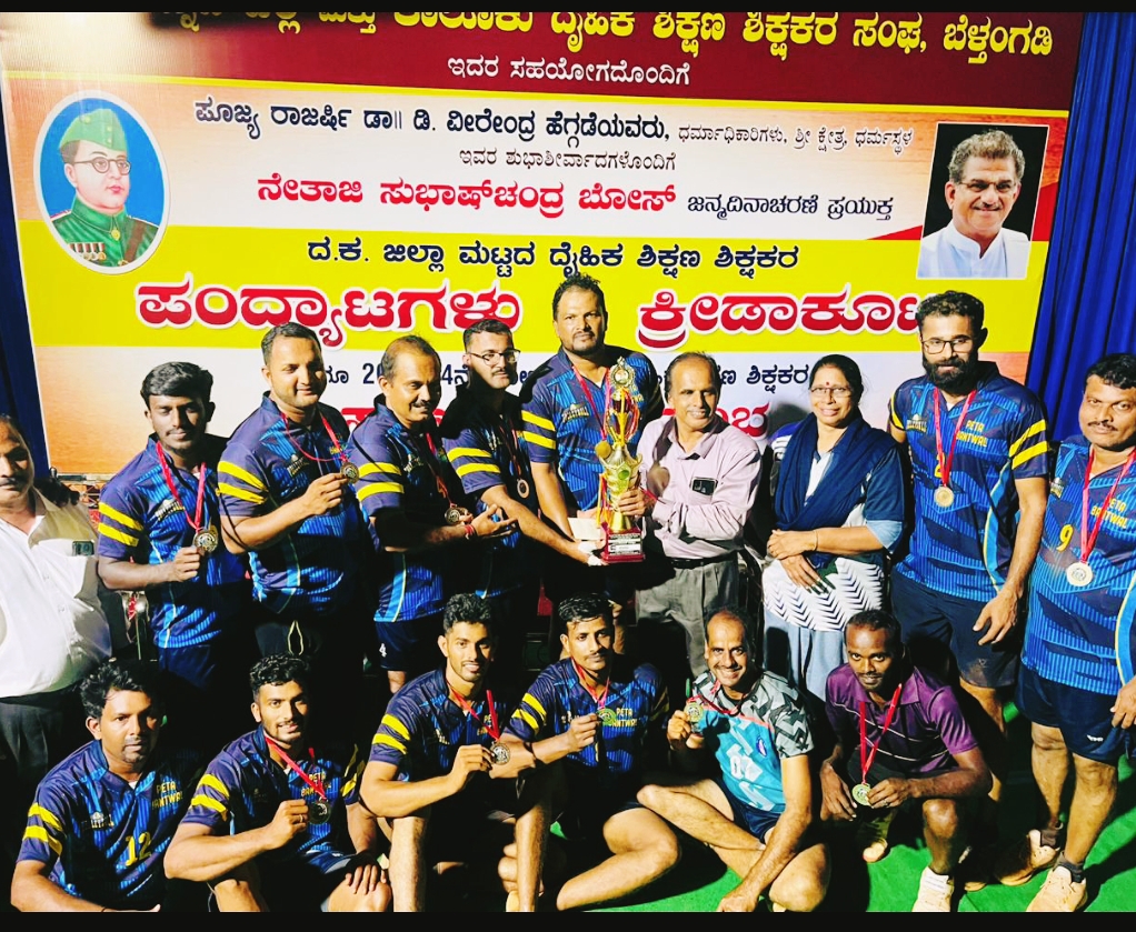 ಬಂಟ್ವಾಳ: ಉಜಿರೆ ಎಸ್.ಡಿ.ಎಂ. ಕಾಲೇಜಿನಲ್ಲಿ ನಡೆದ ಜಿಲ್ಲಾ ಮಟ್ಟದ ದೈಹಿಕ ಶಿಕ್ಷಣ ಶಿಕ್ಷಕರ ಕ್ರೀಡಾಕೂಟದಲ್ಲಿ ಬಂಟ್ವಾಳ ತಾಲೂಕು ದೈಹಿಕ ಶಿಕ್ಷಣ ಶಿಕ್ಷಕರ ತಂಡ ವಾಲಿಬಾಲ್ ವಿಭಾಗದಲ್ಲಿ ಪ್ರಥಮ ಸ್ಥಾನ ಪಡೆದಿದೆ.ಒಟ್ಟು ಎಂಟು ತಂಡಗಳು ಭಾಗವಹಿಸಿದ ಈ ಪಂದ್ಯಾಟದಲ್ಲಿ ಬೆಳ್ತಂಗಡಿ ತಂಡವು ದ್ವಿತೀಯ ಪ್ರಶಸ್ತಿಯನ್ನು ಪಡೆದಿರುತ್ತದೆ. ಸತತ ಹದಿನೈದು ವರ್ಷಗಳಿಂದ ಬಂಟ್ವಾಳ ತಂಡ ಚಾಂಪಿಯನ್ನಾಗಿ ಮೂಡಿಬಂದಿರುತ್ತದೆ, ತಂಡದಲ್ಲಿ ಕಪ್ತಾನ ರಫೀಕ್ ನಾರ್ಶಾ. ಪ್ರಶಾಂತ್ ಜೆಮ್ ,ಚಂದ್ರಹಾಸ ಎಸ್.ವಿ.ಎಸ್, ರಾಘವೇಂದ್ರ ಸಾಲೆತ್ತೂರು, ಮಿಥುನ್ ಮೊಡಂಕಾಪು, ಜಗದೀಶ್ ತುಂಬೆ, ಸುರೇಶ್ ಕಾರ್ಮೆಲ್, ಅಜಿತ್ ಶಾರದಾ, ನಿಖಿಲ್ ಕೈರಂಗಳ, ದೀಪಕ್ ಬುಡೋಳಿ, ತಿರುಮಲೇಶ್ ಹೋರಿಜಾನ್, ಪದ್ಮನಾಭ ಲೋರೆಟ್ಟು, ಸಫ್ವನ್ ಜೆನಿತ್ ಭಾಗವಹಿಸಿದ್ದರು. ತಾಲೂಕು ದೈಹಿಕ ಶಿಕ್ಷಣ ಪರಿವೀಕ್ಷಣಾಧಿಕಾರಿ ವಿಷ್ಣುನಾರಾಯಣ ಹೆಬ್ಬಾರ್, ತಾಲೂಕು ದೈಹಿಕ ಶಿಕ್ಷಣ ಶಿಕ್ಷಕರ ಸಂಘದ ಅಧ್ಯಕ್ಷರಾದ ರಾಜೇಂದ್ರ ರೈ ಅಳಿಕೆ ಮತ್ತು ಬಂಟ್ವಾಳ ತಾಲೂಕು ವಾಲಿಬಾಲ್ ಅಸೋಶಿಯೇಶನ್ ಅಧ್ಯಕ್ಷ ಸುಪ್ರೀತ್ ಆಳ್ವಾ ಅಭಿನಂದಿಸಿದರು.