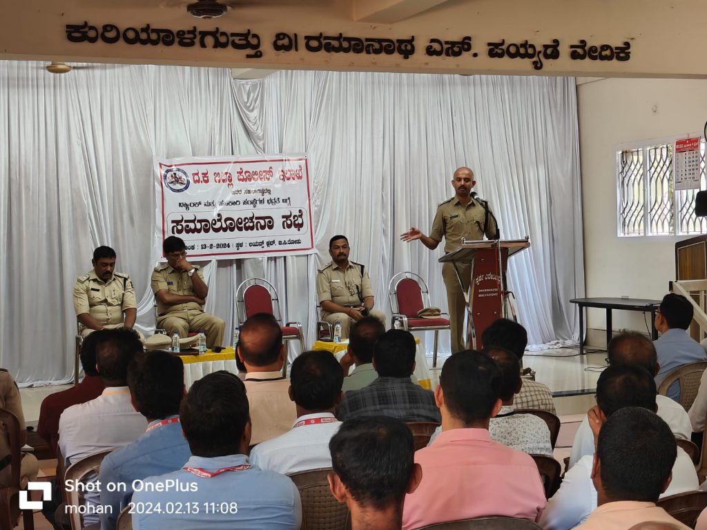 ದಕ್ಷಿಣ ಕನ್ನಡ ಜಿಲ್ಲಾ ಪೊಲೀಸ್ ವ್ಯಾಪ್ತಿಯಲ್ಲಿ ಕಾರ್ಯನಿರ್ವಹಿಸುತ್ತಿರುವ ಬ್ಯಾಂಕ್ ಗಳ ಸುರಕ್ಷತೆಗೆ ಸಂಬಂಧಿಸಿದಂತೆ ಬಂಟ್ವಾಳ ಲಯನ್ಸ್ ಸಭಾಂಗಣದಲ್ಲಿ ಪೊಲೀಸ್ ಅಧೀಕ್ಷಕ ರಿಷ್ಯಂತ್ ಉಪಸ್ಥಿತಿಯಲ್ಲಿ ಎಲ್ಲಾ ಬ್ಯಾಂಕ್ ಮುಖ್ಯಸ್ಥರು ಗಳೊಂದಿಗೆ ಸಭೆಯನ್ನು ನಡೆಸಲಾಯಿತು.