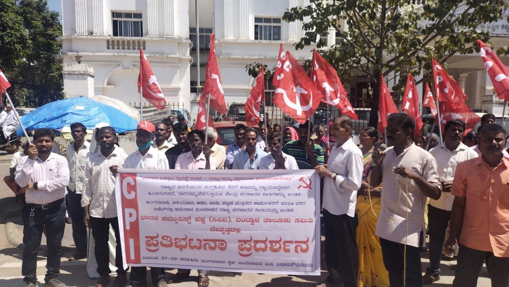 ರಾಜ್ಯ ಸರಕಾರ ಕೂಡಾ ಚುನಾವಣಾ ಪೂರ್ವದಲ್ಲಿ ಸ್ಕೀಂ ಕಾರ್ಮಿಕರಿಗೆ ಘೋಷಿಸಿದ್ದ 6 ನೇ ಗ್ಯಾರಂಟಿಯನ್ನು 2024-25 ಸಾಲಿನ ಬಜೆಟ್ ನಲ್ಲಿ ಯಾವುದೇ ಅನುದಾನ ಮೀಸಲಿಡದೇ ಕೊಟ್ಟ ಮಾತಿಗೆ ತಪ್ಪಿದೆ. ಈ ಹಿನ್ನೆಲೆಯಲ್ಲಿ ಅಂಗನವಾಡಿ, ಆಶಾ, ಬಿಸಿಯೂಟ, ಕಟ್ಟಡ, ಕಾರ್ಮಿಕರ ಬೇಡಿಕೆಗಳನ್ನು ಅತೀ ಶೀಘ್ರವಾಗಿ ಇತ್ಯರ್ಥಗೊಳಿಸಲು ಆಗ್ರಹಿಸಲಾಯಿತು. ಪ್ರತಿಭಟನಾ ಸಭೆಯನ್ನುದ್ದೇಶಿಸಿ ಸಿಪಿಐ ಜಿಲ್ಲಾ ಕಾರ್ಯದರ್ಶಿ ಬಿ.ಶೇಖರ್, ಸಿಪಿಐ ಜಿಲ್ಲಾ ಸಹ ಕಾರ್ಯದರ್ಶಿ ವಿ.ಸೀತಾರಾಂ ಬೇರಿಂಜ ಮಾತನಾಡಿದರು. ಪಕ್ಷದ ಬಿಸಿರೋಡು ಕಚೇರಿಯಿಂದ ಮೆರವಣಿಗೆ ನಡೆಯಿತು. ನೇತೃತ್ವವನ್ನು ಪಕ್ಷದ ಬಂಟ್ವಾಳ ತಾಲೂಕು ಮುಖಂಡ ಬಿ.ಬಾಬು ಭಂಡಾರಿ, ರಾಮ ಮುಗೇರ ವಿಟ್ಲ, ಶ್ರೀನಿವಾಸ ಭಂಡಾರಿ, ಓ ಕೃಷ್ಣ, ಭೋಜ ಕರಂಬೇರ, ಹರ್ಷಿತ್ ಬಂಟ್ವಾಳ, ಶಮಿತಾ, ಕುಸುಮಾ ಕಳ್ಳಿಗೆ, ಕೇಶವತಿ, ಮಮತಾ, ರತಿ ಎಸ್ ಭಂಡಾರಿ, ಮೋಹಿನಿ, ಕಮಲಾಕ್ಷ ಭಂಡಾರಿ, ಮುಂತಾದವರು ವಹಿಸಿದ್ದರು. ಸಿಪಿಐ ಬಂಟ್ವಾಳ ತಾಲೂಕು ಕಾರ್ಯದರ್ಶಿ ಸುರೇಶ್ ಕುಮಾರ್ ಪ್ರಾಸ್ತಾವಿಕವಾಗಿ ಮಾತನಾಡಿದರು. ಸಹಕಾರ್ಯದರ್ಶಿ ಪ್ರೇಮನಾಥ ಕೆ ವಂದಿಸಿದರು.