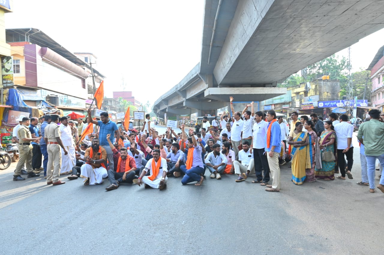 ರಾಜ್ಯ ಸರಕಾರದ ಹಿಂದೂ ವಿರೋಧಿ ನೀತಿಯನ್ನು ಅನುಸರಿಸುತ್ತದೆ ಎಂದು ಆರೋಪಿಸಿ ವಿಶ್ವಹಿಂದು ಪರಿಷತ್, ಬಜರಂಗದಳದ ಪುತ್ತೂರು ಜಿಲ್ಲಾ ಘಟಕದ ವತಿಯಿಂದ ಸೋಮವಾರ ಬಿ.ಸಿ.ರೋಡ್ ನಲ್ಲಿ ಹೆದ್ದಾರಿ ತಡೆದು ಪ್ರತಿಭಟನೆ ನಡೆಯಿತು. ಈ ಸಂದರ್ಭ ಪ್ರತಿಭಟನಾಕಾರರನ್ನು ಬಂಟ್ವಾಳ ಪೋಲೀಸರು ಬಂಧಿಸಿ ಬಿಡುಗಡೆಗೊಳಿಸಿದರು.