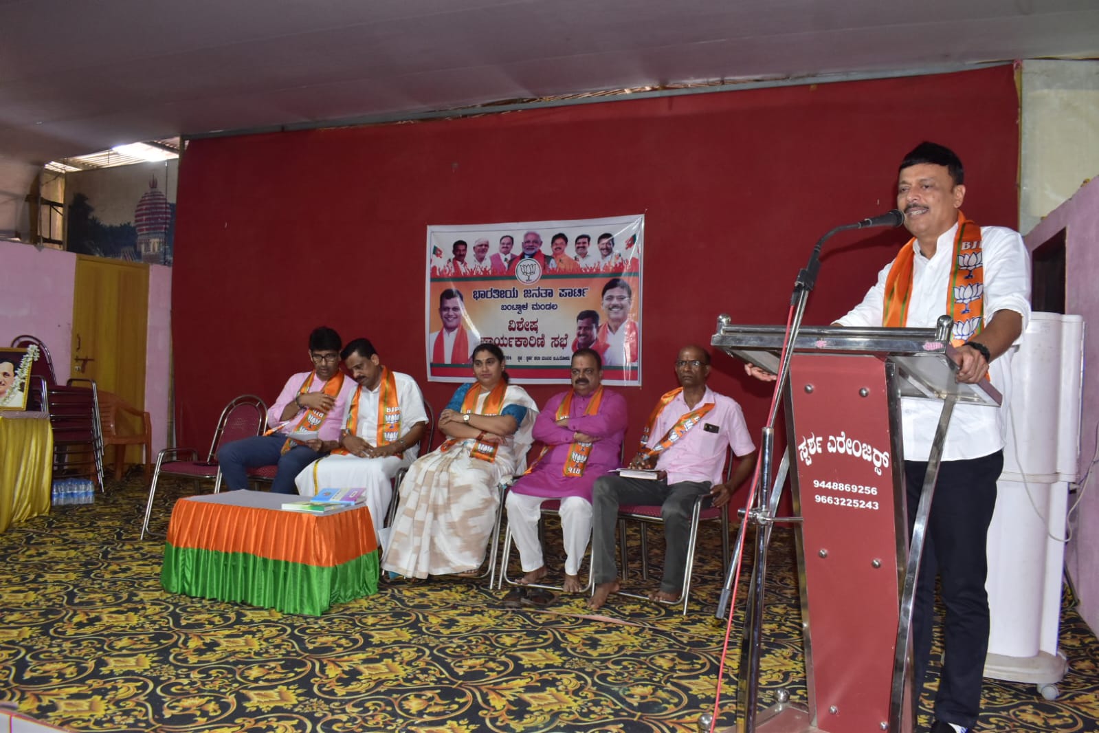 ಭಾರತೀಯ ಜನತಾ ಪಾರ್ಟಿ ಬಂಟ್ವಾಳ ಮಂಡಲದ ವಿಶೇಷ ಕಾರ್ಯಕಾರಿಣಿ ಸಭೆ ಕ್ಷೇತ್ರ ಅಧ್ಯಕ್ಷ ಚೆನ್ನಪ್ಪ ಆರ್. ಕೋಟ್ಯಾನ್ ಅಧ್ಯಕ್ಷತೆಯಲ್ಲಿ ಹಾಗೂ ಕ್ಷೇತ್ರ ಶಾಸಕ ರಾಜೇಶ್ ನಾಯ್ಕ್ ಉಳಿಪ್ಪಾಡಿ ಅವರ ಉಪಸ್ಥಿತಿಯಲ್ಲಿ ಬಿ.ಸಿ.ರೋಡು ಸ್ಪರ್ಶ ಕಲಾ ಮಂದಿರದಲ್ಲಿ ನಡೆಯಿತು.
