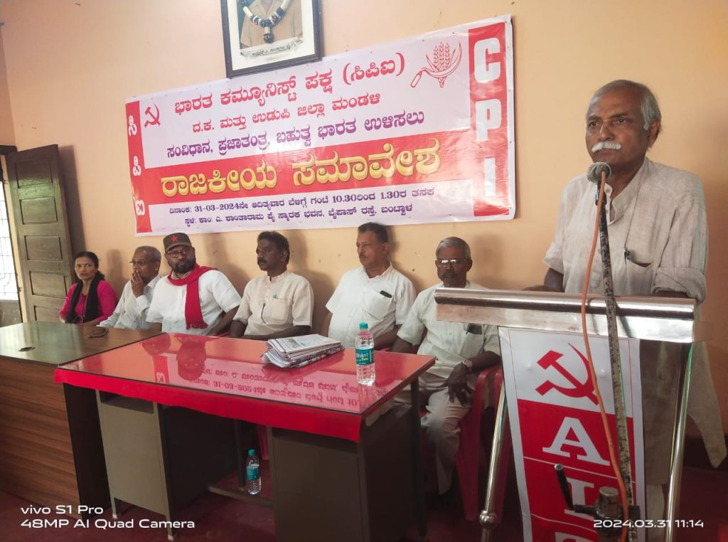 ಬಂಟ್ವಾಳದ ಬೈಪಾಸಿನಲ್ಲಿರುವ ಪಕ್ಷದ ಬಂಟ್ವಾಳ ತಾಲೂಕು ಕಚೇರಿಯ ಎ.ಶಾಂತಾರಾಮ ಪೈ ಸ್ವಾರಕ ಸಭಾ ಭವನದಲ್ಲಿ ಸಿಪಿಐ ದ.ಕ ಜಿಲ್ಲಾ ಸಮಿತಿ ನೇತೃತ್ವದಲ್ಲಿ ಸಂವಿಂಧಾನ, ಪ್ರಜಾತಂತ್ರ, ಬಹುತ್ವ ಭಾರತ ಉಳಿಸಲು ಎಂಬ ಶೀರ್ಷೀಕೆಯಡಿಯಲ್ಲಿ ನಡೆದ ರಾಜಕೀಯ ಸಮಾವೇಶವನ್ನು ಉದ್ಘಾಟಿಸಿ ಮಾತನಾಡುತ್ತಿದ್ದರು.