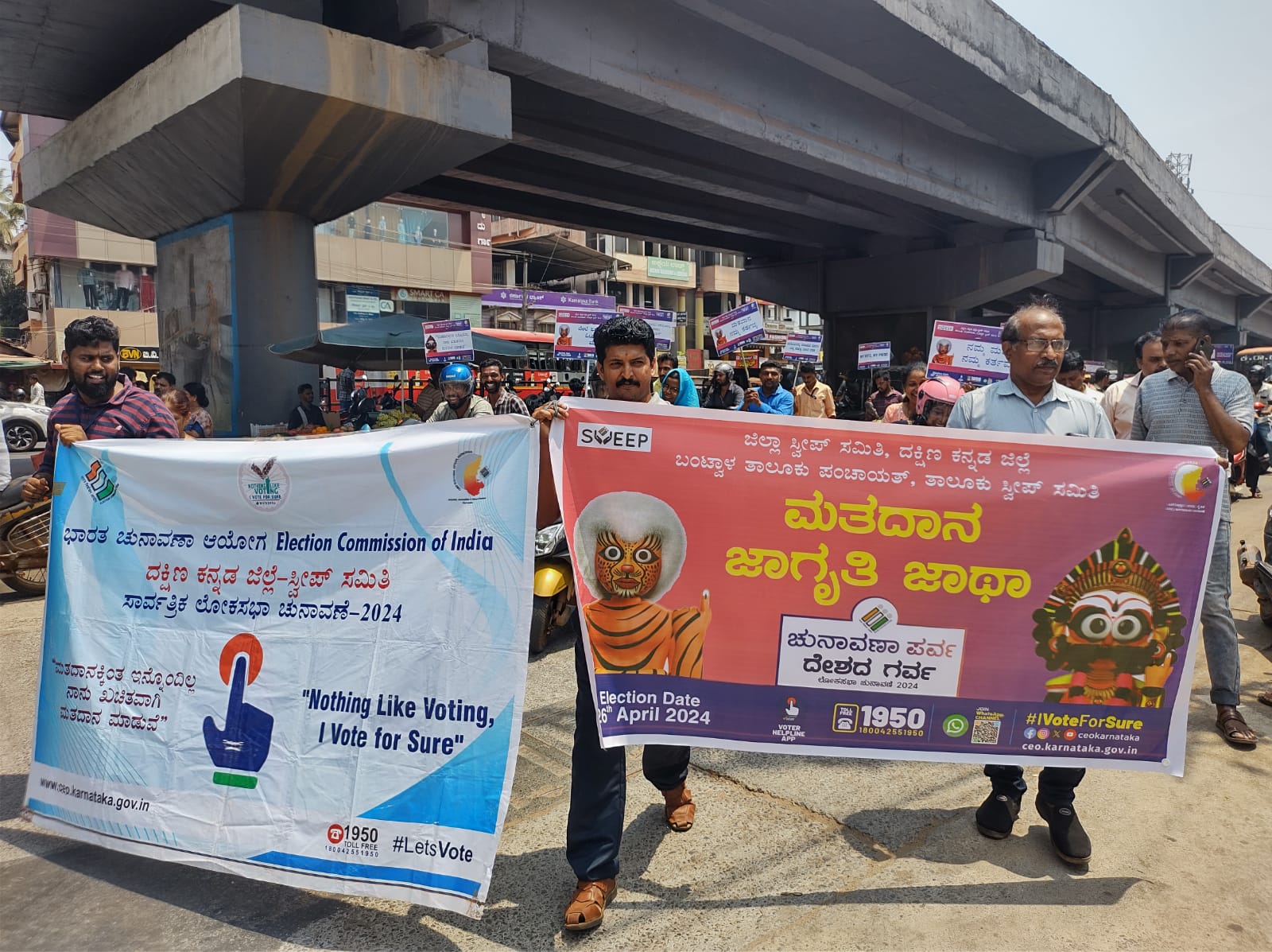ಬಂಟ್ವಾಳ ತಾಲೂಕು ಕಚೇರಿಯಿಂದ ಹೊರಟ ಜಾಗೃತಿ ಜಾಥಾ ಬಿ.ಸಿರೋಡ್ ಪೇಟೆಯ ಮೂಲಕ ಸಾಗಿ ಬಂಟ್ವಾಳ ತಾಲೂಕು ಪಂಚಾಯತ್ ವಠಾರದಲ್ಲಿ ಸಮಾಪನಗೊಂಡಿತು. ಸಮಾಪನ ಕಾರ್ಯಕ್ರದಲ್ಲಿ ನಿಷ್ಪಕ್ಷಪಾತ ಮತದಾನ ಹಾಗೂ ಯಾವುದೇ ಆಮಿಷಗಳಿಗೆ ಬಲಿಯಾಗದೇ ಸ್ವತಂತ್ರವಾಗಿ ನೀವು ಹಾಗೂ ನಿಮ್ಮ ಮನೆಯವರೆಲ್ಲವರು ಮತದಾನ ಮಾಡುವಂತೆ ಬಂಟ್ವಾಳ ತಾಲೂಕು ಪಂಚಾಯತ್ನ ಕಾರ್ಯನಿರ್ವಾಹಕ ಅಧಿಕಾರಿ ರಾಹುಲ್ ಅ. ಕಾಂಬಳೆ ತಿಳಿಸಿದರು. ಸಹಾಯಕ ನಿರ್ದೇಶಕರಾದ ವಿಶ್ವನಾಥ ಬಿ., ಹಾಗೂ ತಾಲೂಕು ಕಚೇರಿಯ ಕೇಂದ್ರ ಸ್ಥಾನೀಯ ಉಪತಹಸೀಲ್ದಾರ್ ನರೇಂದ್ರನಾಥ ಮಿತ್ತೂರು ಉಪಸ್ಥಿತರಿದ್ದರು. ಸ್ವೀಪ್ ಸಮಿತಿಯ ತಾಲೂಕು ನೋಡಲ್ ಸುರೇಖಾ ಯಾಳವಾರ ಮಾಹಿತಿ ನೀಡಿ, ಪ್ರಮಾಣ ವಚನ ಬೋಧಿಸಿ, ನಿರೂಪಣೆ ಮಾಡಿದರು. ತಾಲೂಕು ಪಂಚಾಯಿತಿ ಪ್ರಭಾರ ವ್ಯವಸ್ಥಾಪಕ ಪ್ರಕಾಶ್, ಸಿಬ್ಬಂದಿ ಪ್ರಕಾಶ್, ಅಶೋಕ್, ಐಇಸಿ ಸಂಯೋಜಕ ರಾಜೇಶ್, ಸ್ವೀಪ್ ಸಮಿತಿಯ ಸದಸ್ಯರಾದ ಚಂದ್ರಶೇಖರ್ ಪಾತೂರು, ಪ್ರಶಾಂತ್, ಅಶೋಕ್ ಕುಮಾರ್, ರಾಜೇಶ್ ಉಪಸ್ಥಿತರಿದ್ದರು. ವಿಶೇಷಚೇತನರ ಪುನರ್ವಸತಿ ಕಾರ್ಯಕರ್ತರಾದ ಗಿರೀಶ್, ಜಗದೀಶ್, ದೀಪಾ ಪಡಿಯಾರ್ ಸಹಕರಿಸಿದರು.