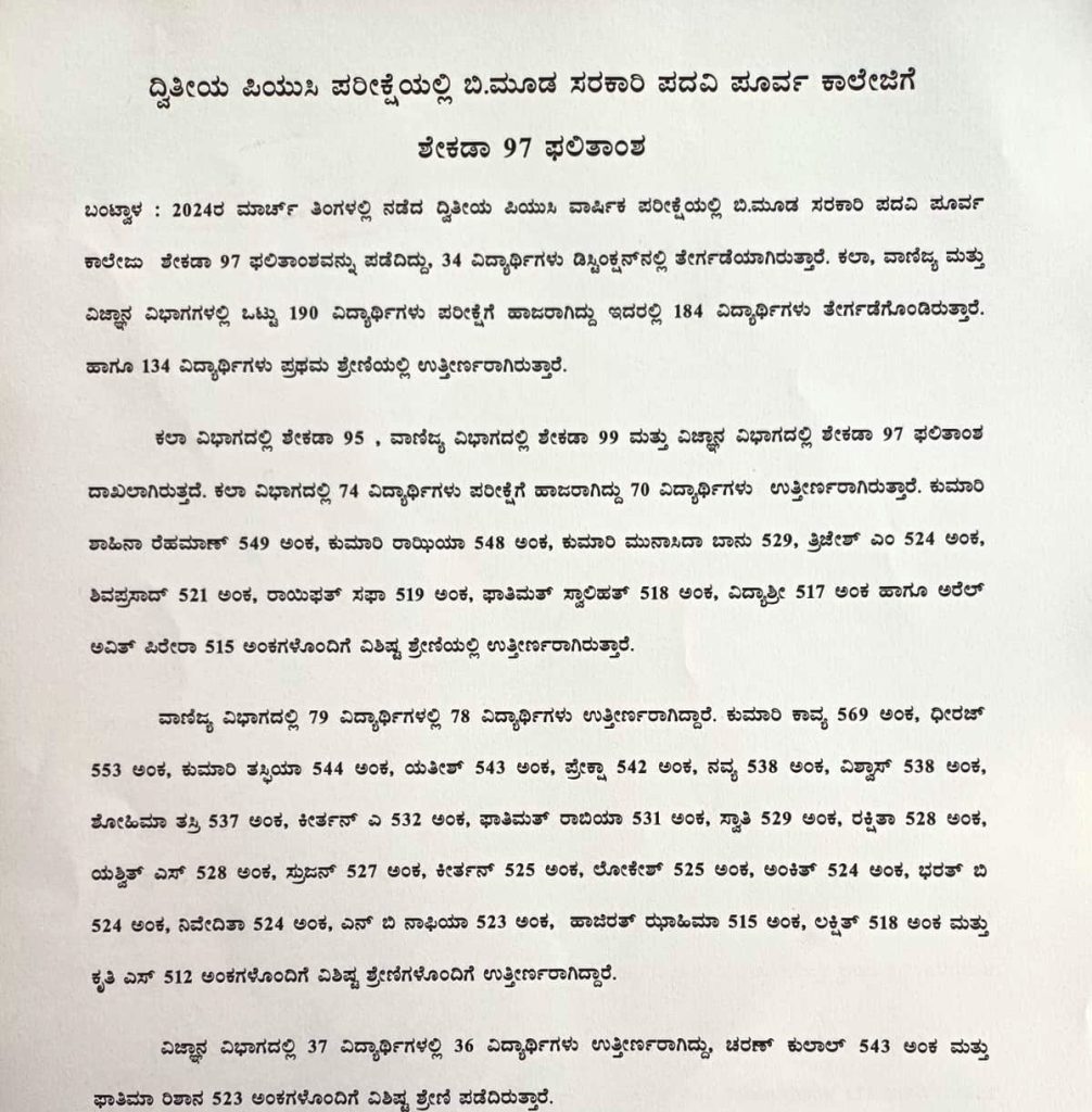 Be the first to comment on "ದ್ವಿತೀಯ ಪಿಯುಸಿ: ಬಿ.ಮೂಡ ಸರಕಾರಿ ಪದವಿಪೂರ್ವ ಕಾಲೇಜಿಗೆ ಶೇ.97 ಫಲಿತಾಂಶ"