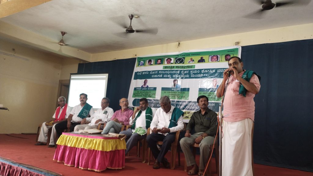 ಅಧ್ಯಕ್ಷತೆಯನ್ನು ಕರ್ನಾಟಕ ರಾಜ್ಯ ರೈತಸಂಘದ ರಾಜ್ಯಾಧ್ಯಕ್ಷ ಬಡಗಲಪುರ ನಾಗೇಂದ್ರ ವಹಿಸಿದ್ದರು. ಕರ್ನಾಟಕ ರಾಜ್ಯ ರೈತಸಂಘದ ಗೌರವಾಧ್ಯಕ್ಷ ಚಾಮರಸ ಮಾಲೀ ಪಾಟೀಲ, ಹಣಕಾಸು ಮತ್ತು ಆರ್ಥಿಕ ತಜ್ಞ ಜೀವಿ ಸುಂದರ್, ಕರ್ನಾಟಕ ರಾಜ್ಯ ರೈತ ಸಂಘದ ಯುವ ಘಟಕದ ರಾಜ್ಯ ಸಂಚಾಲಕ ಆದಿತ್ಯನಾರಾಯಣ ಕೊಲ್ಲಾಜೆ, ಕರ್ನಾಟಕ ರಾಜ್ಯ ರೈತ ಸಂಘದ ಜಿಲ್ಲಾಧ್ಯಕ್ಷ ಓಸ್ವಾಲ್ಡ್ ಪ್ರಕಾಶ್ ಫೆರ್ನಾಂಡೀಸ್, ಜಿಲ್ಲಾ ಪ್ರಧಾನ ಕಾರ್ಯದರ್ಶಿ ಪ್ರೇಮನಾಥ ಶೆಟ್ಟಿ ಬಾಳ್ತಿಲ, ಪ್ರಾಂತ ರೈತಸಂಘದ ಜಿಲ್ಲಾಧ್ಯಕ್ಷ ಕೃಷ್ಣಪ್ಪ ಸಾಲ್ಯಾನ್, ಕಾರ್ಮಿಕ ಸಂಘದ ಜಿಲ್ಲಾಧ್ಯಕ್ಷ ರಾಮಣ್ಣ ವಿಟ್ಲ, ಜಿಲ್ಲಾ ಕಾರ್ಯದರ್ಶಿ ಡಿ.ಕೆ.ಶಾಹುಲ್ ಹಮೀದ್, ಪ್ರಮುಖರಾದ ನಾರಾಯಣಸ್ವಾಮಿ ಉಪಸ್ಥಿತರಿದ್ದರು. ಕರ್ನಾಟಕ ರಾಜ್ಯ ರೈತ ಸಂಘದ ಪ್ರಧಾನ ಕಾರ್ಯದರ್ಶಿ ರವಿಕಿರಣ್ ಪುಣಚ ಪ್ರಾಸ್ತಾವಿಕವಾಗಿ ಮಾತನಾಡಿ, ಸುಳ್ಯ, ಮಲೆನಾಡು ಭಾಗಗಳಲ್ಲಿ ಸುಮಾರು ಆರು ಸಾವಿರ ಹೆಕ್ಟೇರ್ ವಿಸ್ತೀರ್ಣಕ್ಕೆ ಎಲೆ ಹಳದಿ ರೋಗವಿದ್ದು, ಸಮಸ್ಯೆಗೊಳಗಾದ ರೈತರಿಗೆ ಆರ್ಥಿಕ ಪುನಶ್ಚೇತನ ಅಗತ್ಯವಾಗಿದೆ ಎಂದರು.