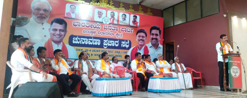 ಬಂಟ್ವಾಳದ ಬ್ರಹ್ಮಶ್ರೀ ನಾರಾಯಣಗುರು ಮಂದಿರದಲ್ಲಿ ಶನಿವಾರ ಭಾರತೀಯ ಜನತಾ ಪಾರ್ಟಿಯ ಬಂಟ್ವಾಳ ವಿಧಾನಸಭಾ ಕ್ಷೇತ್ರದ ಚುನಾವಣಾ ಪ್ರಚಾರ ಸಭೆಯನ್ನು ಉದ್ದೇಶಿಸಿ ಅವರು ಮಾತನಾಡಿದರು.