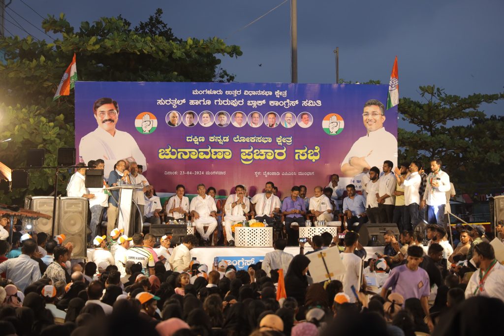 ಸುರತ್ಕಲ್ ಹಾಗೂ ಗುರುಪುರ ಬ್ಲಾಕ್ ಕಾಂಗ್ರೆಸ್ ಸಮಿತಿ ವತಿಯಿಂದ ಬೈಕಂಪಾಡಿ ಎಪಿಎಂಸಿ ಮುಂಭಾಗ ಮಂಗಳವಾರ ಸಂಜೆ ನಡೆದ ಚುನಾವಣಾ ಪ್ರಚಾರ ಸಭೆಯಲ್ಲಿ ಮಾತನಾಡಿದರು.