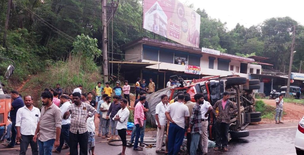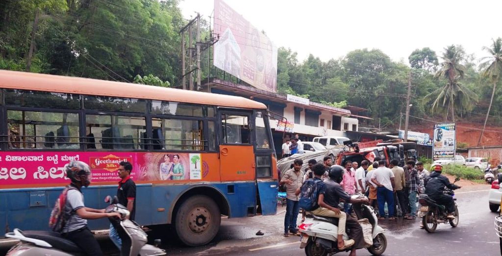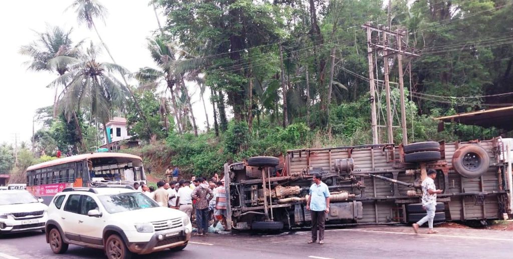 ಲಾರಿಯೊಂದ ಚಾಲಕನ ನಿಯಂತ್ರಣ ಕಳೆದುಕೊಂಡು ಪಲ್ಟಿಯಾಗಿ ಕೆ.ಎಸ್ .ಆರ್. ಟಿ.ಸಿ.ಬಸ್ ಗೆ ಡಿಕ್ಕಿಯಾದ ಘಟನೆ ದಕ್ಷಿಣ ಕನ್ನಡ ಜಿಲ್ಲೆ ವಗ್ಗ ಸಮೀಪ ಕಾಡಬೆಟ್ಟು ಕ್ರಾಸ್ ಬಳಿ ಬುಧವಾರ ನಡೆದಿದ್ದು, ಘಟನೆಯಲ್ಲಿ ಹಲವರು ಗಾಯಗೊಂಡಿದ್ದಾರೆ.