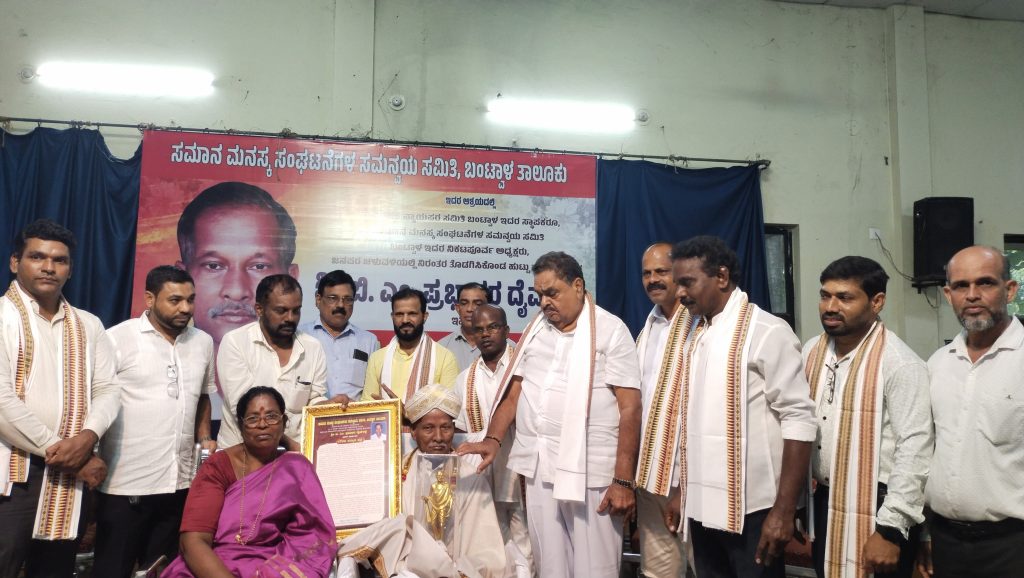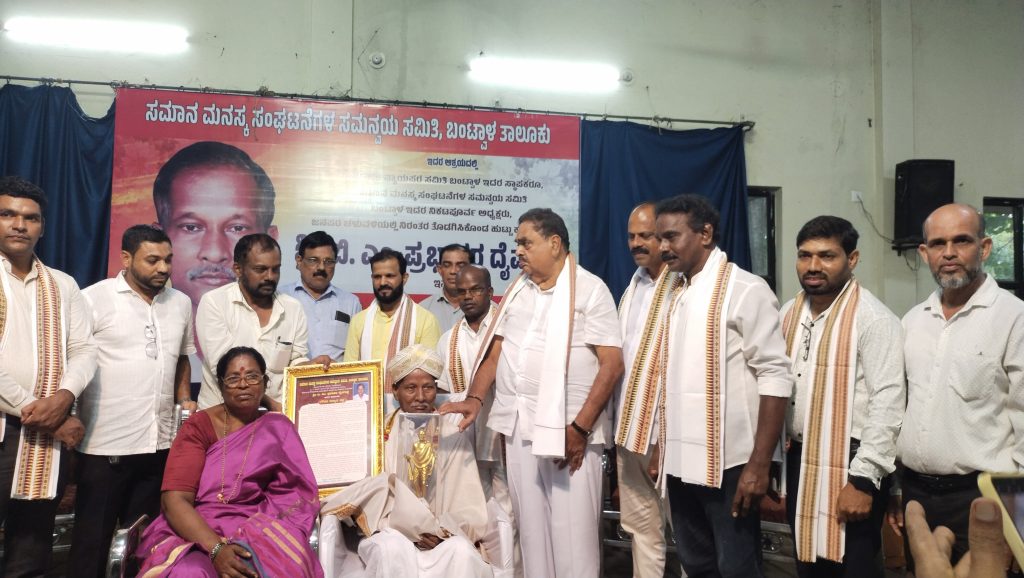 ಸಾಮಾಜಿಕ ನ್ಯಾಯ ಪರ ಹೋರಾಟ ಸಮಿತಿಯ ಸ್ಥಾಪಕರೂ, ಸಮಾನ ಮನಸ್ಕ ಸಂಘಟನೆಯ ಸಮನ್ವಯ ಸಮಿತಿಯ ನಿಕಟಪೂರ್ವ ಅಧ್ಯಕ್ಷರೂ, ಜನಪರ ಹೋರಾಟಗಾರ ಬಿ.ಎಂ.ಪ್ರಭಾಕರ ದೈವಗುಡ್ಡೆ ಅವರಿಗೆ ಸಮಾನ ಮನಸ್ಕ ಸಮನ್ವಯ ಸಂಘಟನೆಗಳ ವತಿಯಿಂದ ಬಿ.ಸಿ.ರೋಡಿನ ರೋಟರಿ ಸಭಾಂಗಣದಲ್ಲಿ ಭಾನುವಾರ ನಡೆದ ಸಾರ್ವಜನಿಕ ಗೌರವಾರ್ಪಣೆ ಕಾರ್ಯಕ್ರಮದಲ್ಲಿ ಸನ್ಮಾನ ನೆರವೇರಿಸಿ ಮಾತನಾಡಿದರು.